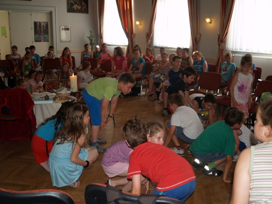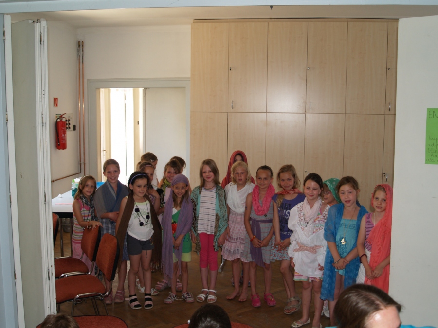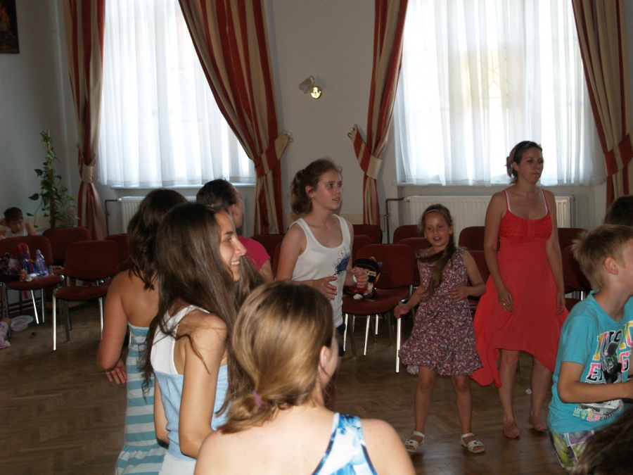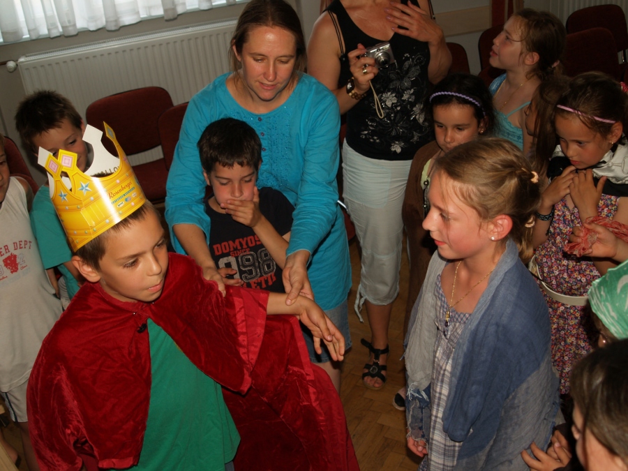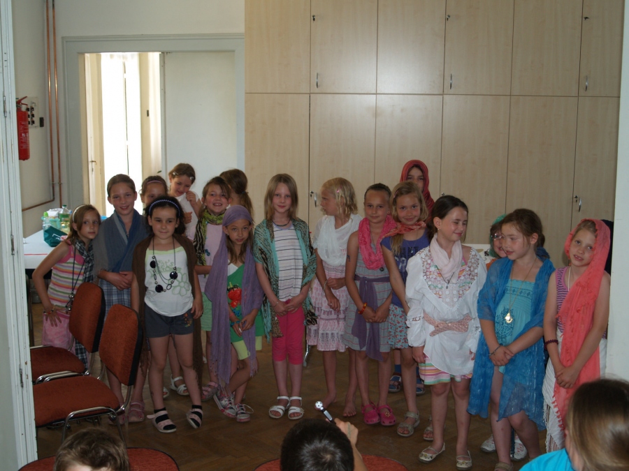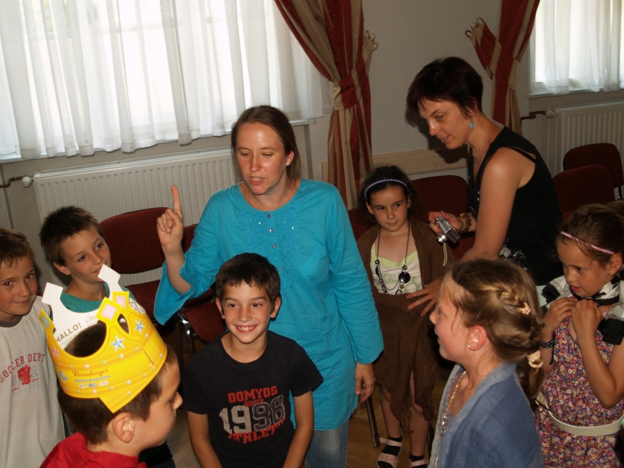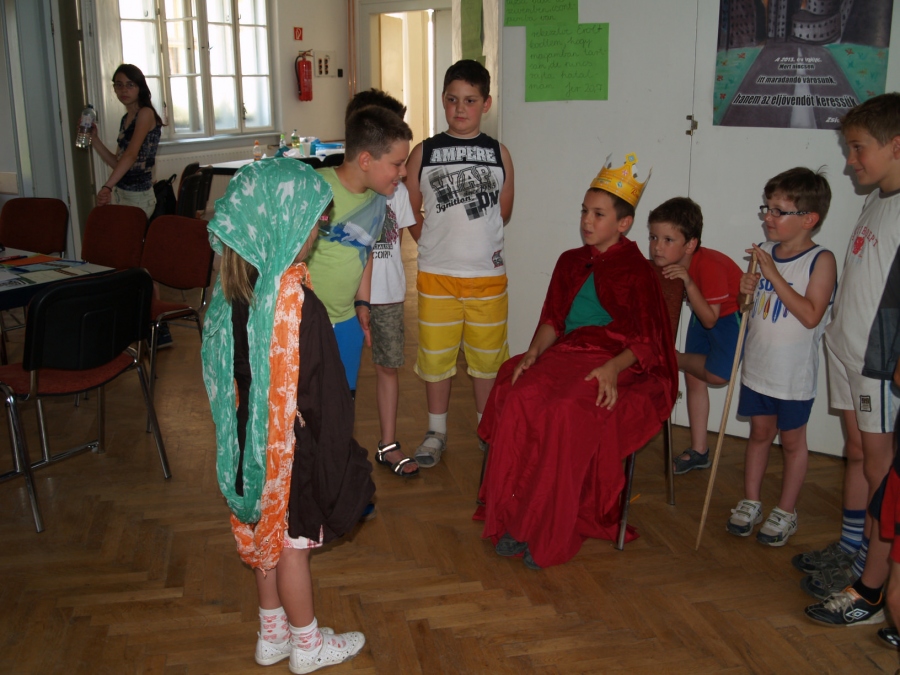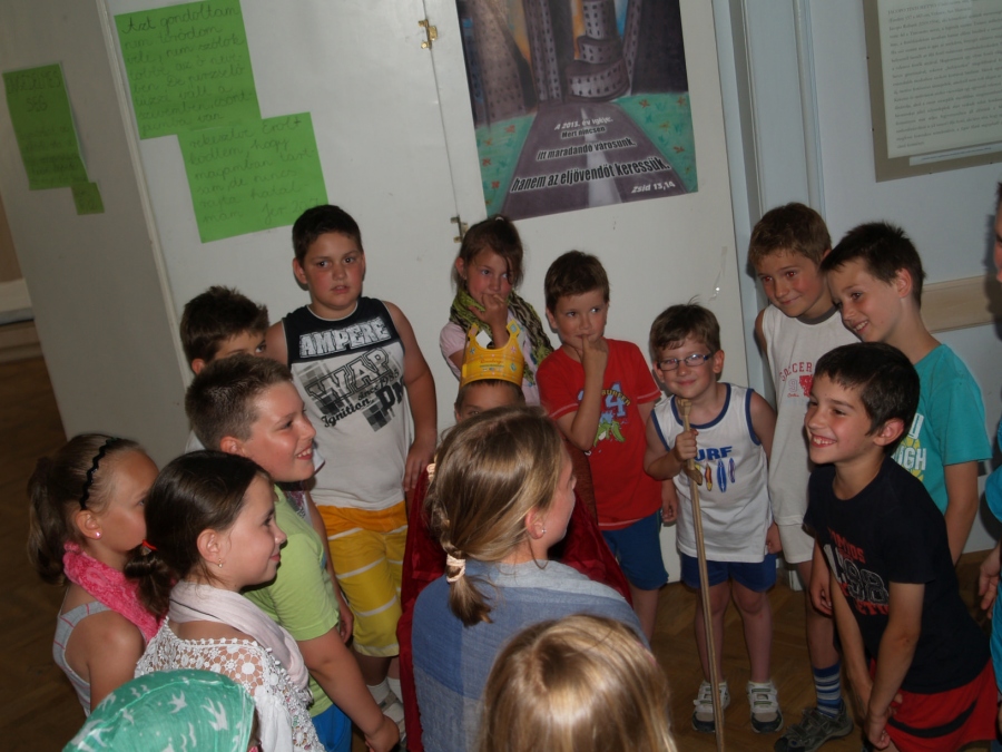A tábor második napján Eszter könyvéről tanultak a gyerekek. A tanulás mellett sok vidám pillanatot élhettek át.