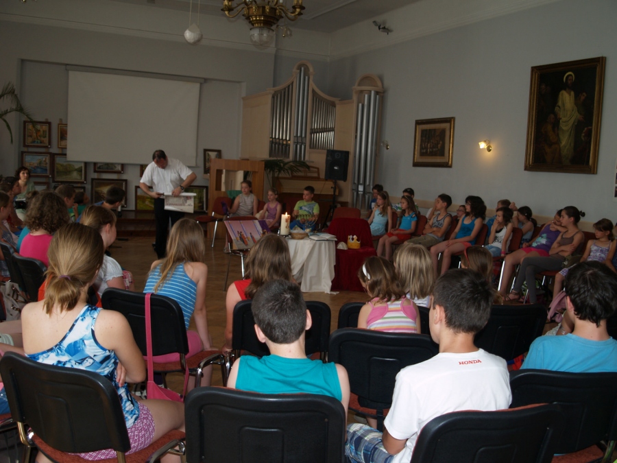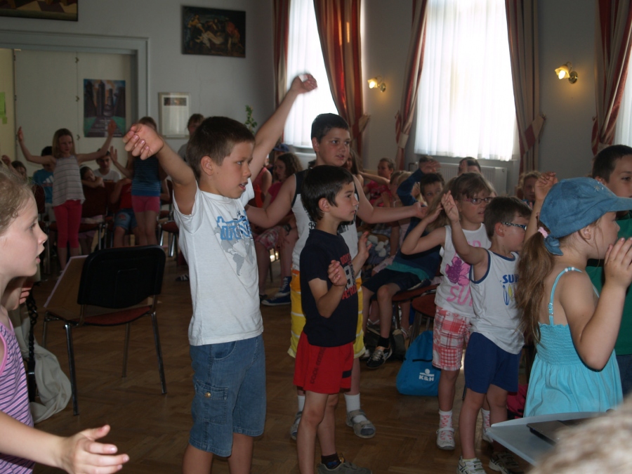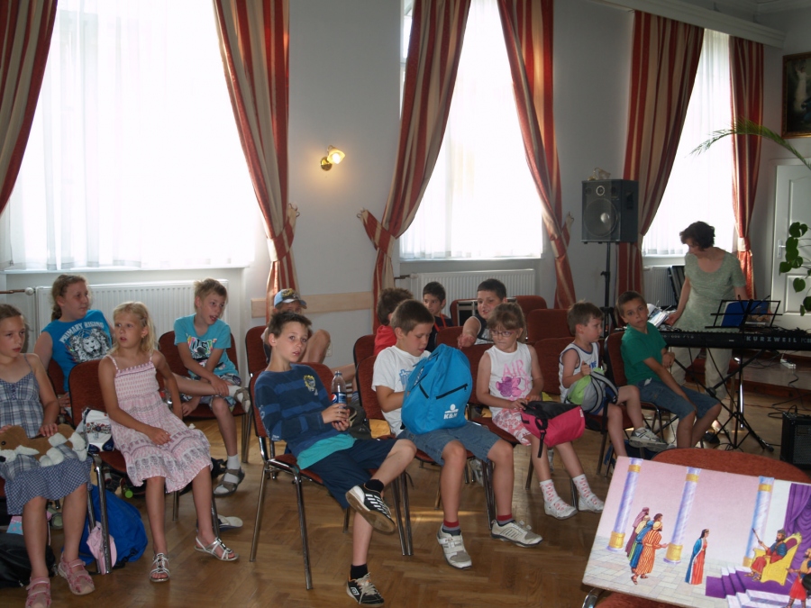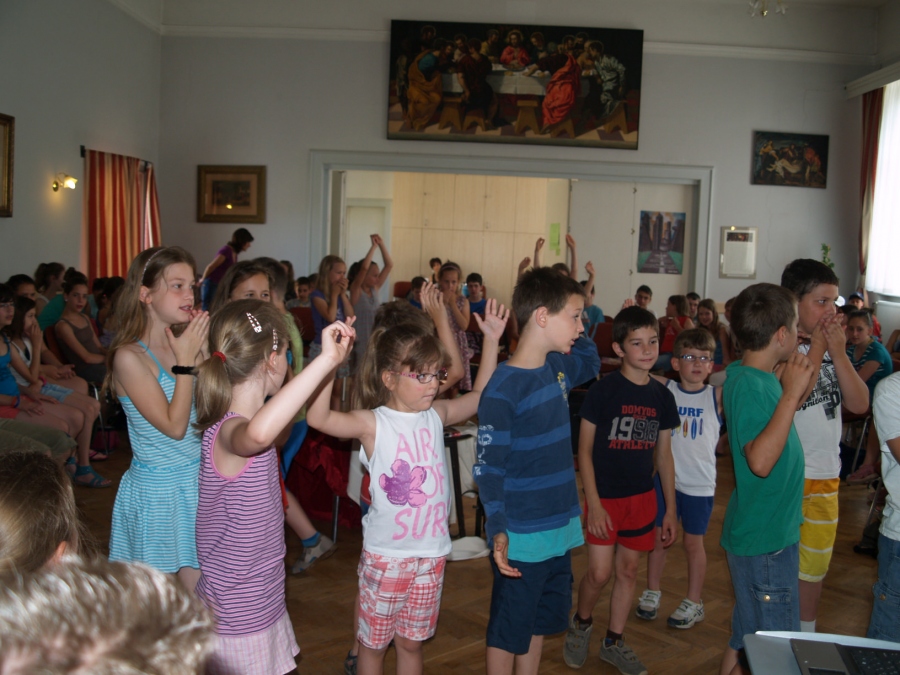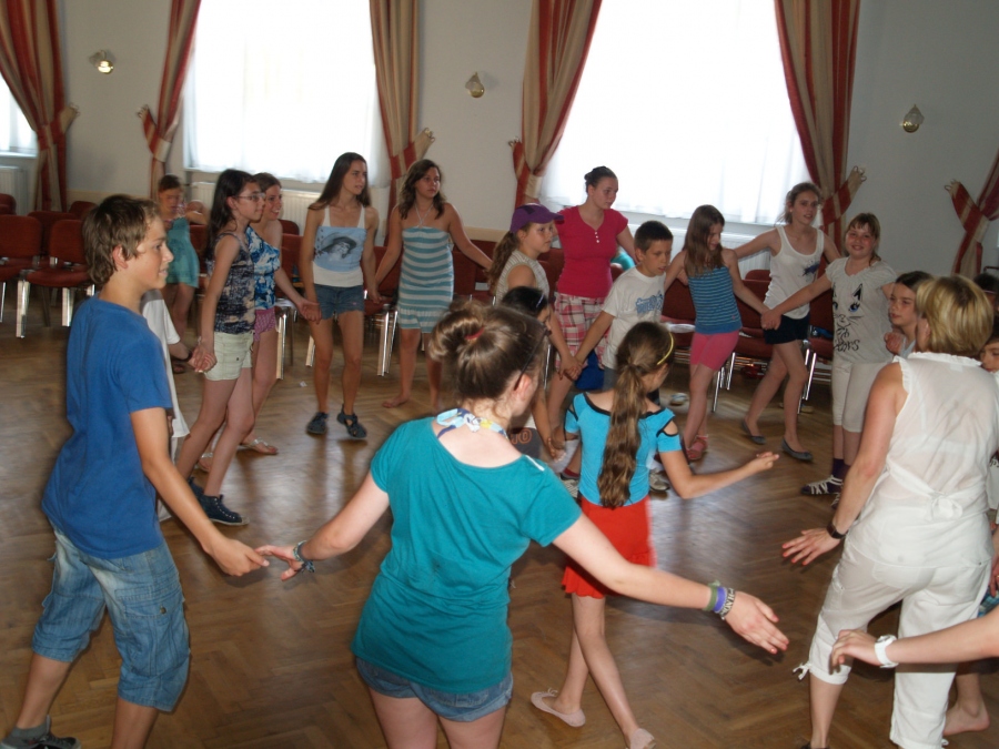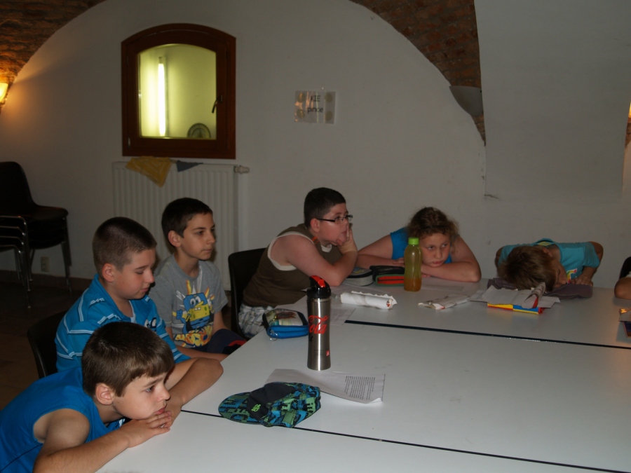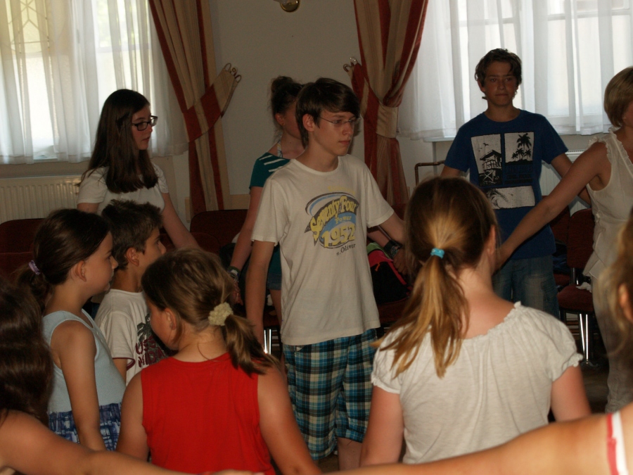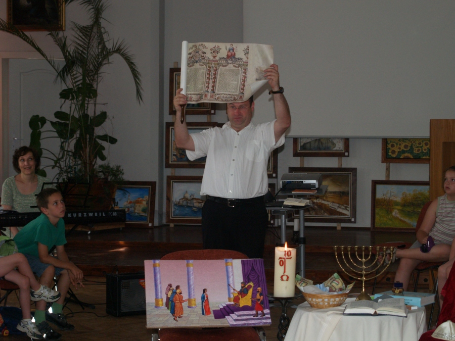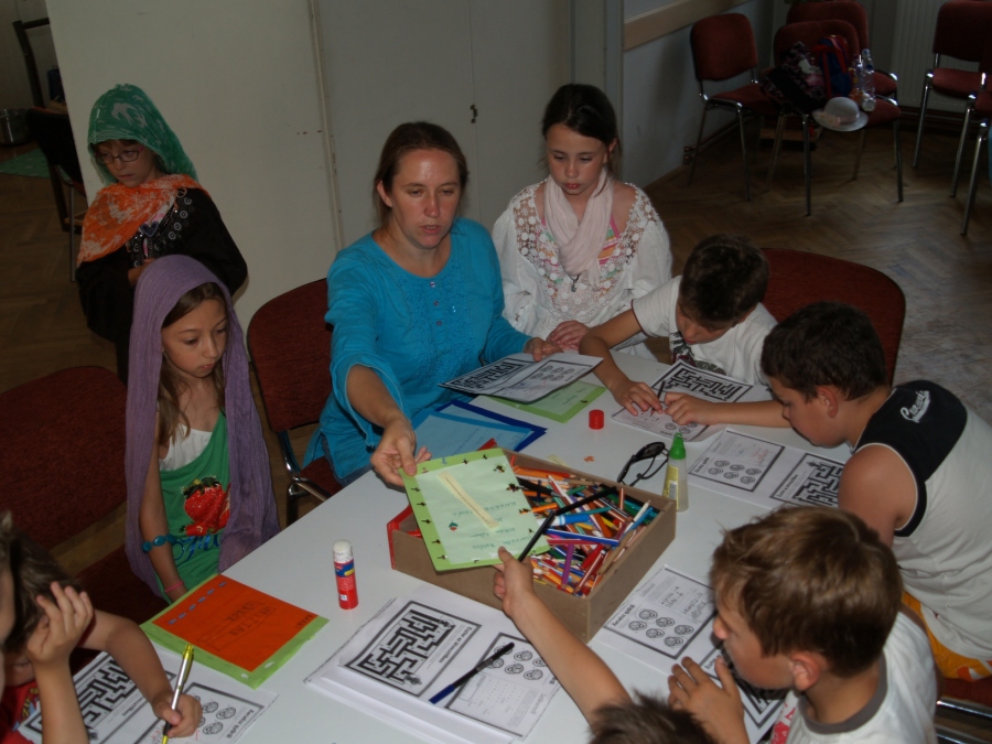 A tábor második napján Eszter könyvéről tanultak a gyerekek. A tanulás mellett sok vidám pillanatot élhettek át.