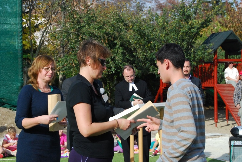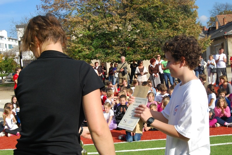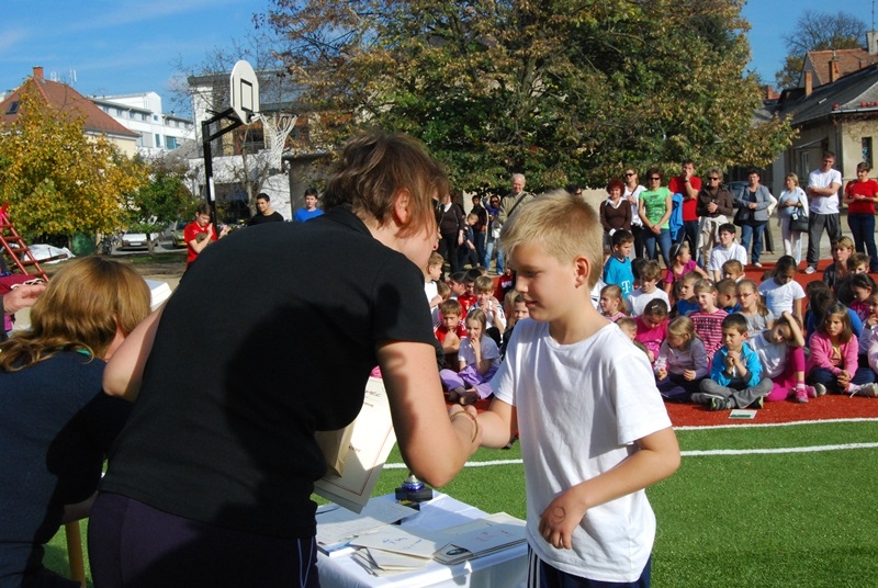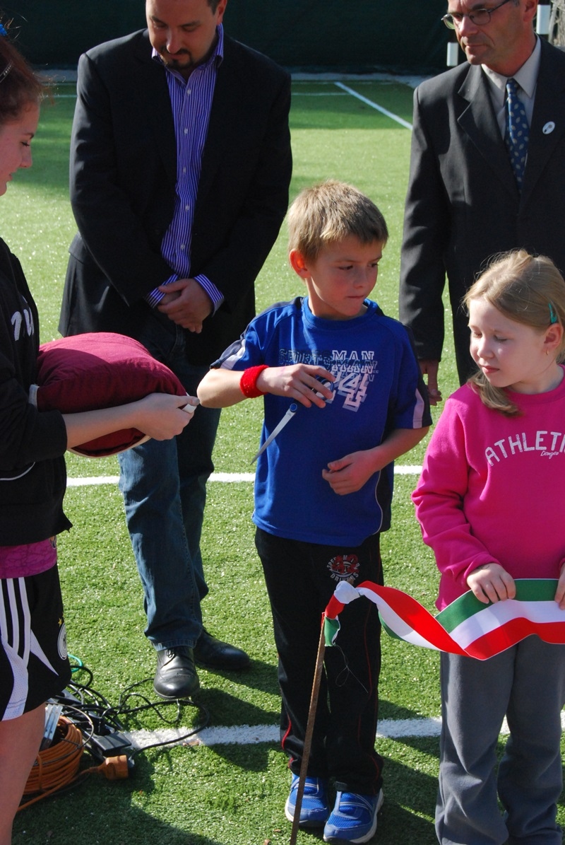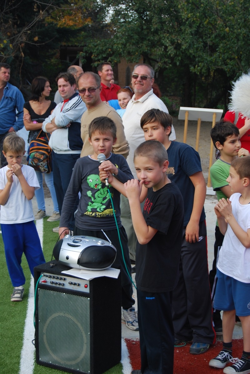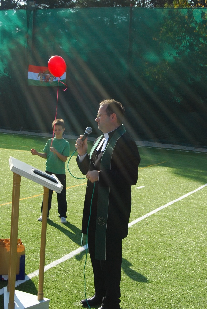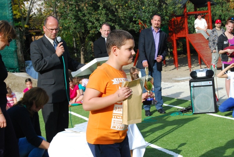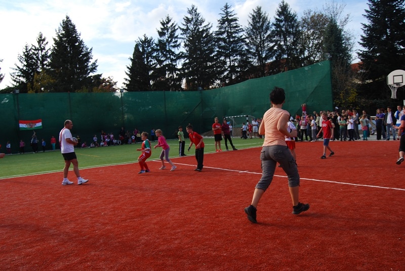 A rendezvény csúcspontja a délutáni pályaavató ünnepség volt, melyen Gregersen-Labossa György lelkész úrral közös imádságban adtunk hálát Istennek, hogy elkészülhetettek az intézmény új műfüves pályái. Sátory Károly igazgató úr köszönetet mondott a támogatóknak, Lazáry Viktor a körzet önkormányzati képviselője és város alpolgármestere pedig a sport fontosságát hangsúlyozta. Az ünnepélyes szalagátvágás után a 6. osztály és a 3. osztály zenés műsora tette még emlékezetesebbé az avatót. A délelőtti verseny győztesei is átvehették jutalmukat.
