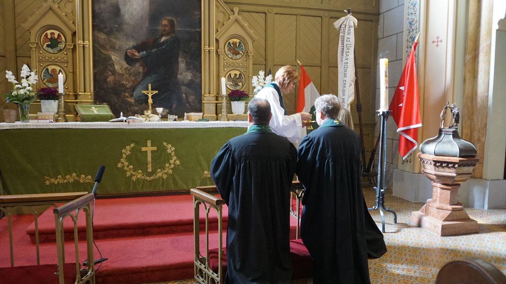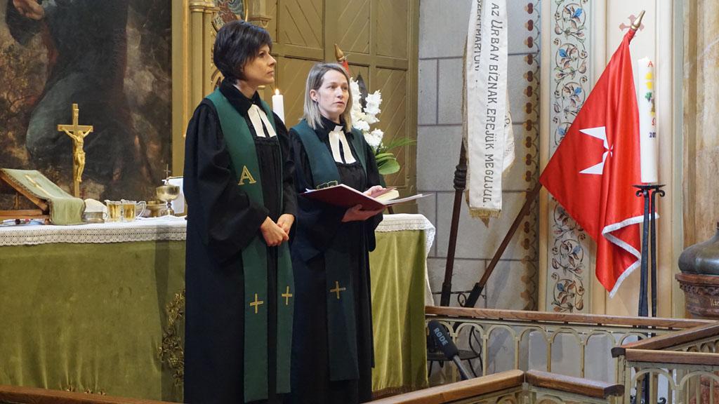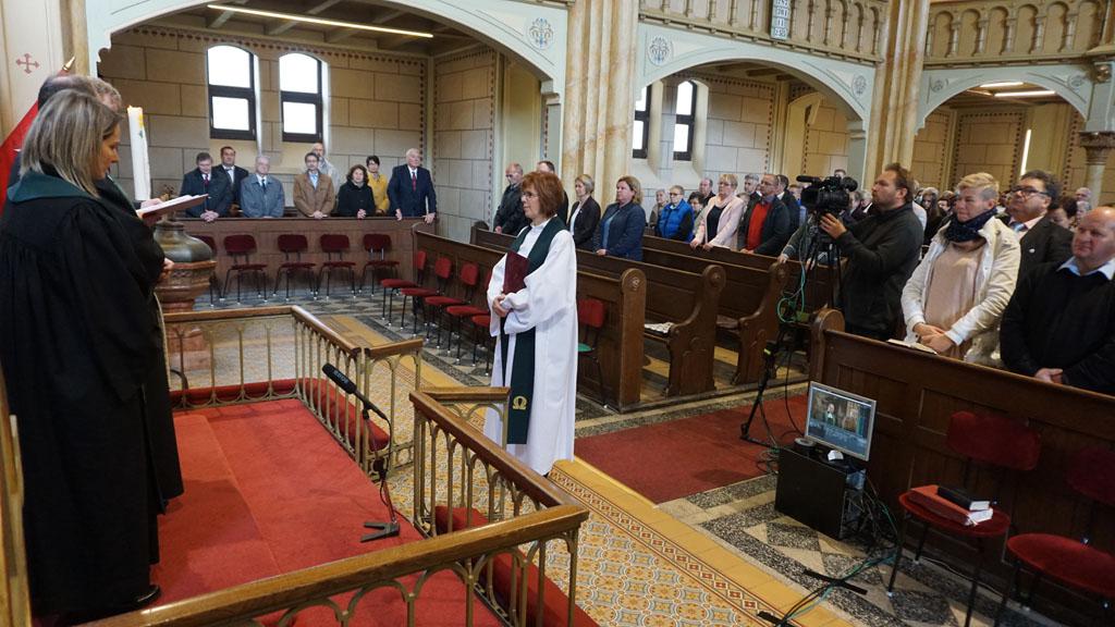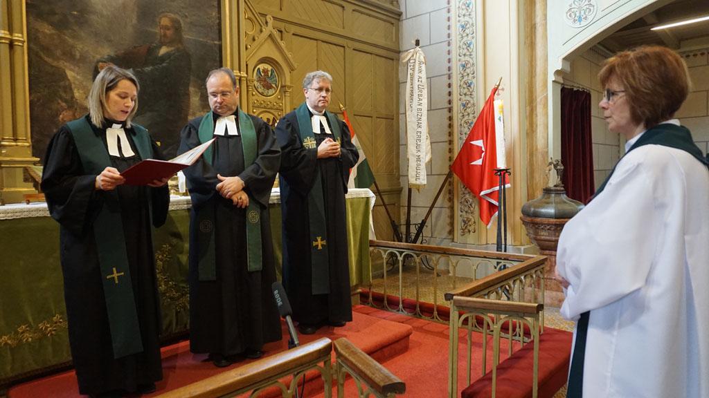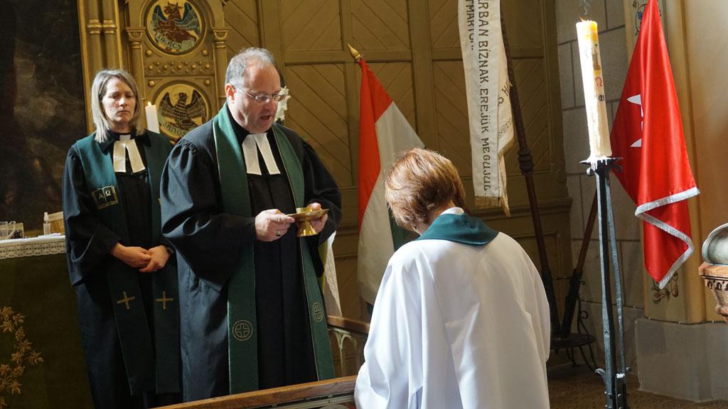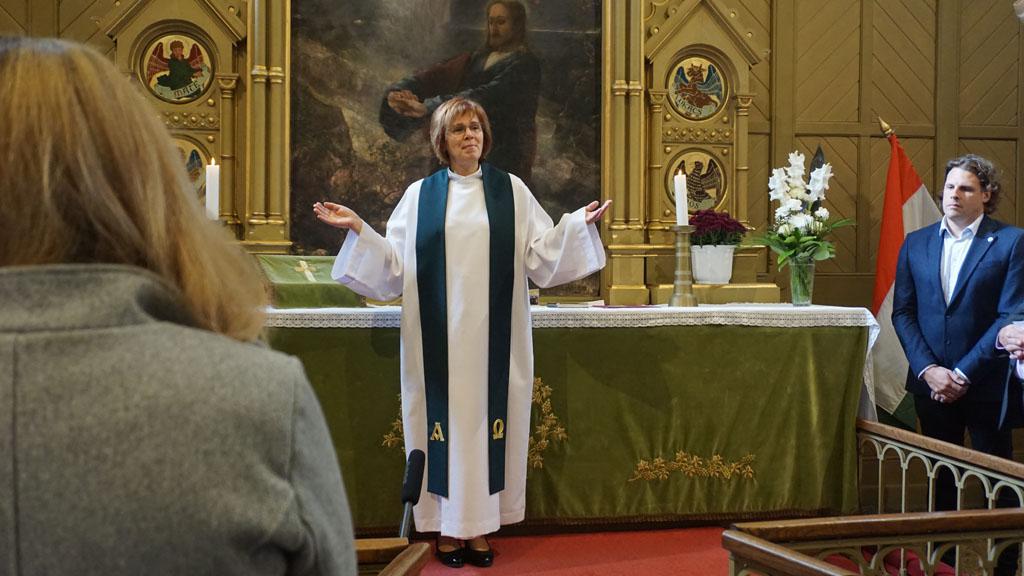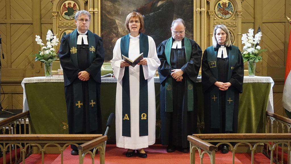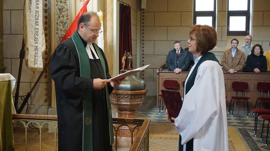 Az ünnepi istentiszteleten Gregersen-Labossa György, a Diakóniai Bizottság elnöke hirdette Isten igéjét. Elnök úr beiktatta lelkészi szolgálatába Menyesné Uram Zsuzsannát, a SZEDIK diakóniai lelkészét, aki ezt követően az intézmény vezetőjét, Szabó Miklóst iktatta be hivatalába. Az intézmény dolgozói az oltár előtt áldásban részesültek.