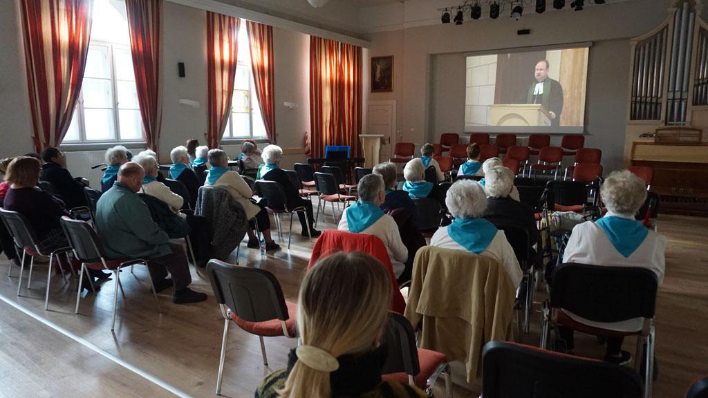 Az istentiszteletet élőben nézhették az idősotthon lakói a kápolnában, a felvételt visszanézhetik itt: