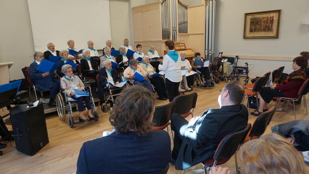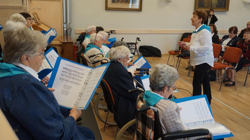 Az istentiszteletet követően az ünneplő gyülekezet a Kápolnában a Túróczy otthon Őszirózsák dalkörének előadását hallhatta, majd Horváth Rita és Márovics Sándor jubielumi dolgozók köszöntése, jutalomátadása következett. Intézményvezető úr köszöntötte a Szeretetotthonból az elmúlt 20 év során nyugdíjba vonult dolgozókat, valamint az elmúlt években az otthonban szolgáló önkénteseket is.