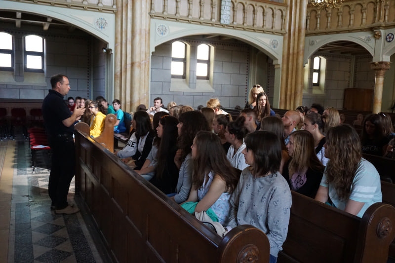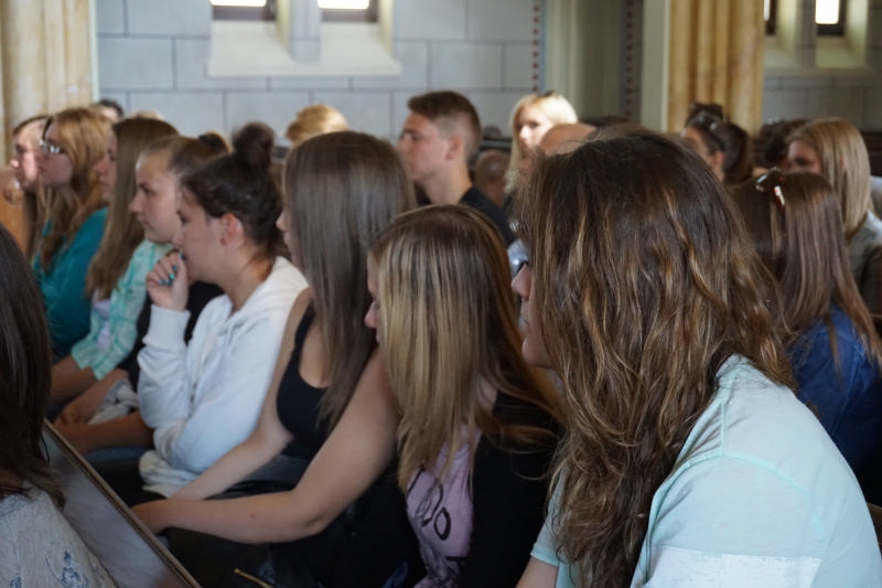 Ezen a napon vendégek is érkeztek az egyházközségbe, a Kereskedelmi és Vendéglátóipari Szakközépiskola diákjai látogatták meg az evangélikus templomot. Gregersen-Labossa György lelkész tartott előadást a középiskolásoknak.