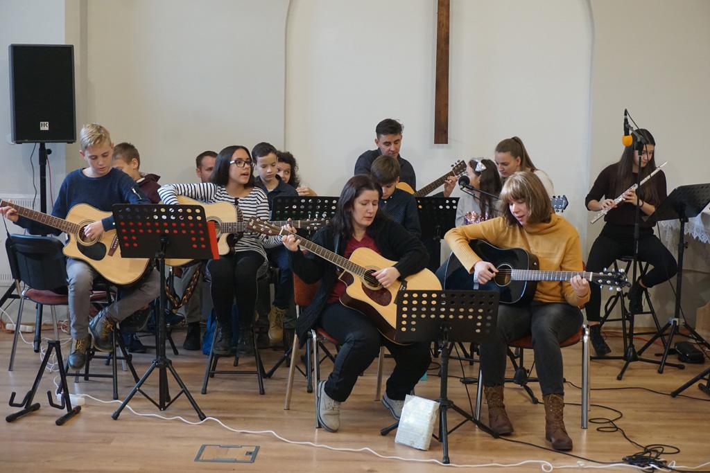 Adventi koszorúk, meglepetés dobozok, karácsonyi asztaldíszek és különféle kézműves termék, valamint sütemények sorakoztak az adventi forgatag asztalain. Ezúttal is nagy népszerűségnek örvendett a gyerekek rajzaiból készült 2019-es naptár, s a bibliaolvasó útmutató is. A vásár ideje alatt a Capito Gitárklub zenélt.