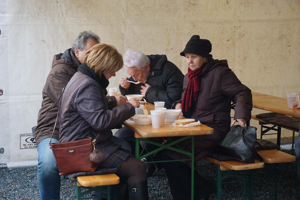 Az udvari sátrakban idén is háromféle étel közül választhattak a vásározók. A gyerekek kedvence idén is a hotdog volt, de nagy sikert aratott a babgulyás és a székelykáposzta is. Bár az idő kegyes volt a szabadtéri közös ebédhez, azért jólesett a fottó tea és a forralt bor is a vásári forgatagban.