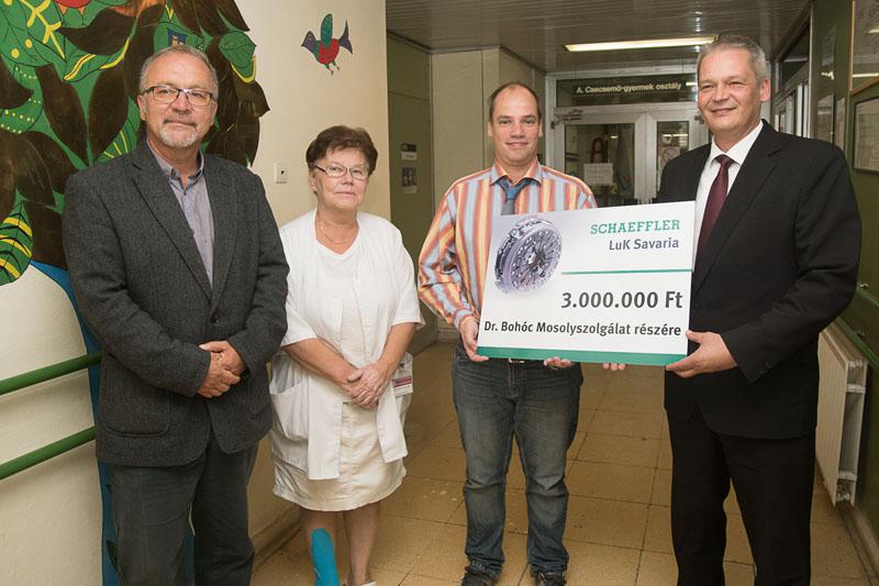 A találkozón az LUK Savaria Kft. igazgatója, Szigeti Tibor tájékoztatta a jelenlevőket arról, hogy a cég 3 millió forinttal támogatja a bohócdoktorok munkáját. A LuK Savaria is tulajdonképpen egy családi vállalkozás, ezért nagyon fontosnak tartja a családot - mondta a vezető. Neki is van gyereke, tudja, mit jelent a Mosolyszolgálat munkája. Elárulta azt is, hogy a továbbiakban is szeretnék támogatni a bohócdoktorokat.