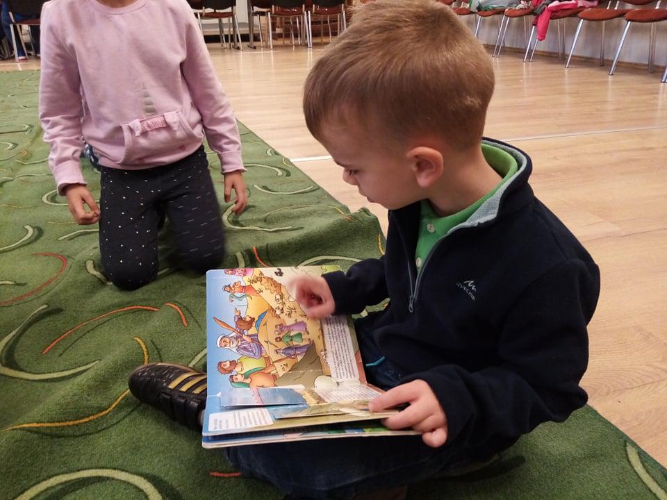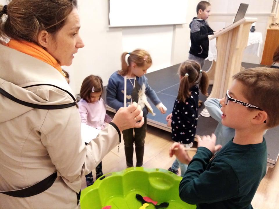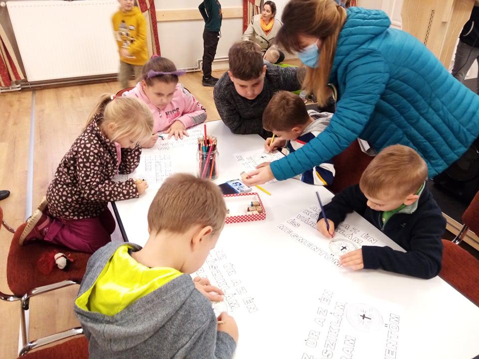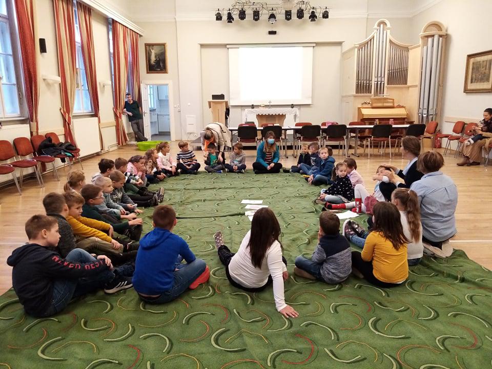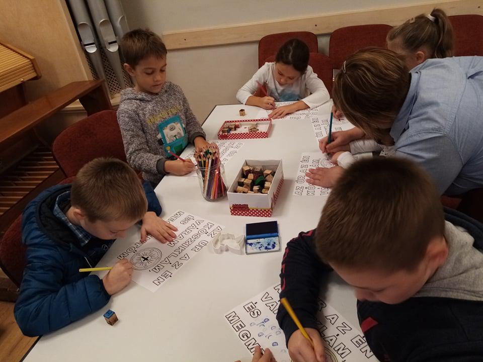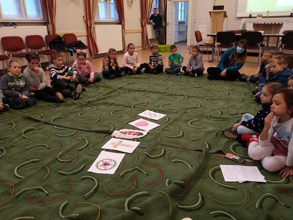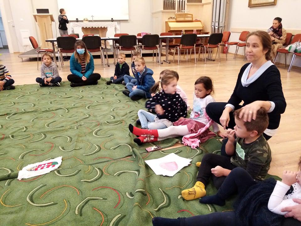 Ismét óvodás-kisiskolás foglalkozást tartottunk a családi istentisztelet ideje alatt a kápolnában.