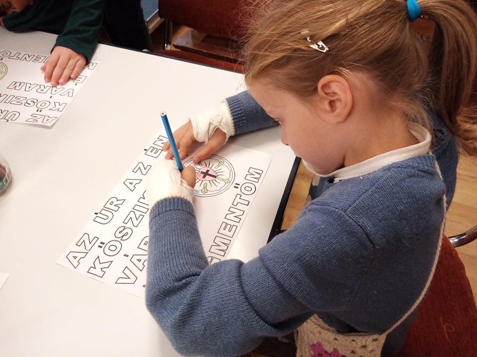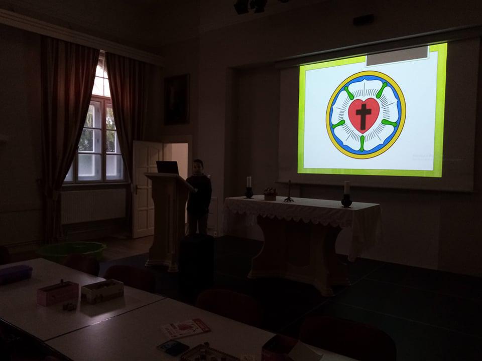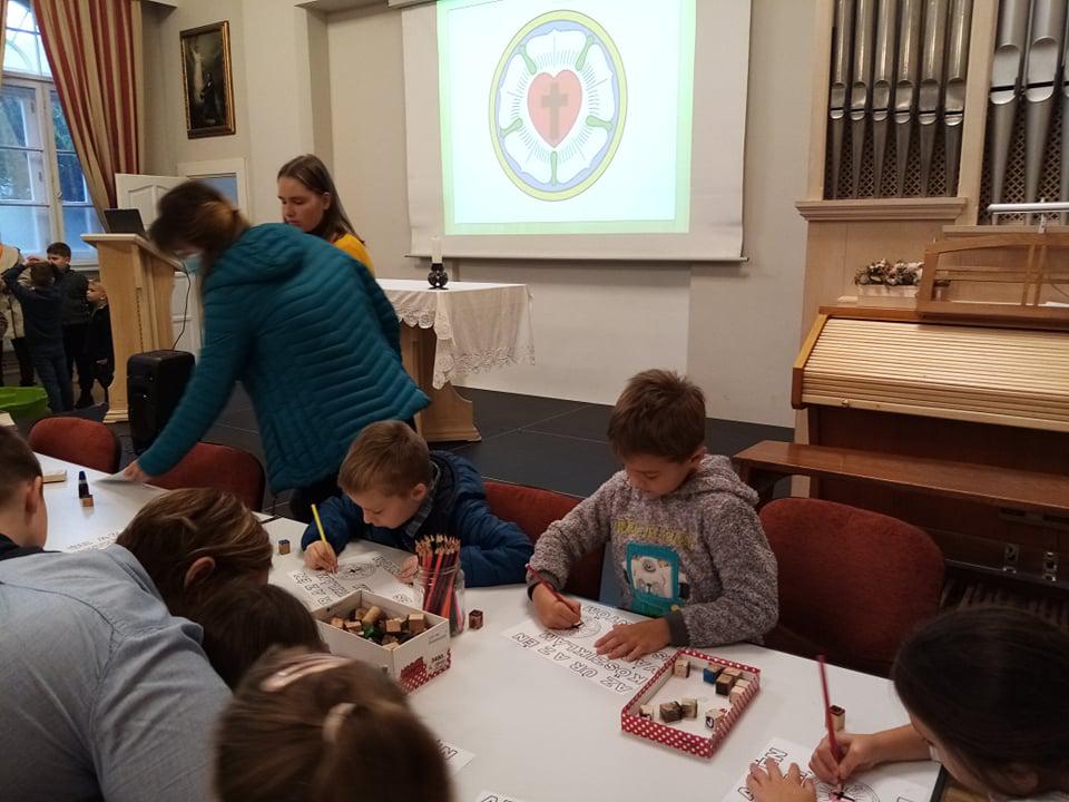 A kicsik négy állomáson keresztül ismerkedhettek meg a reformáció lényegével. Lehetett bekötött szemmel tételeket sürgetni, halat fogni, színezni, kézlenyomatot festeni. Az alkalom zárásaként pedig minden gyerkőc ajándékba kapott egy Luther rózsa formájú mézeskalácsot és egy Luther linzert.