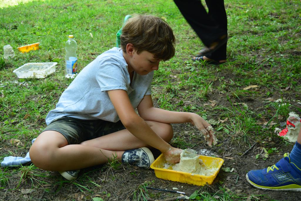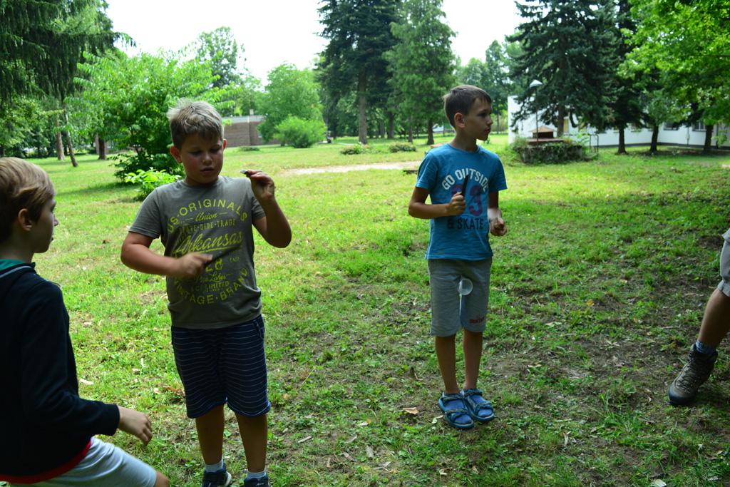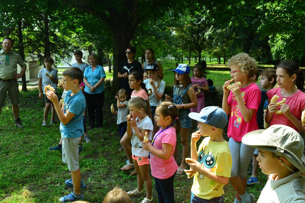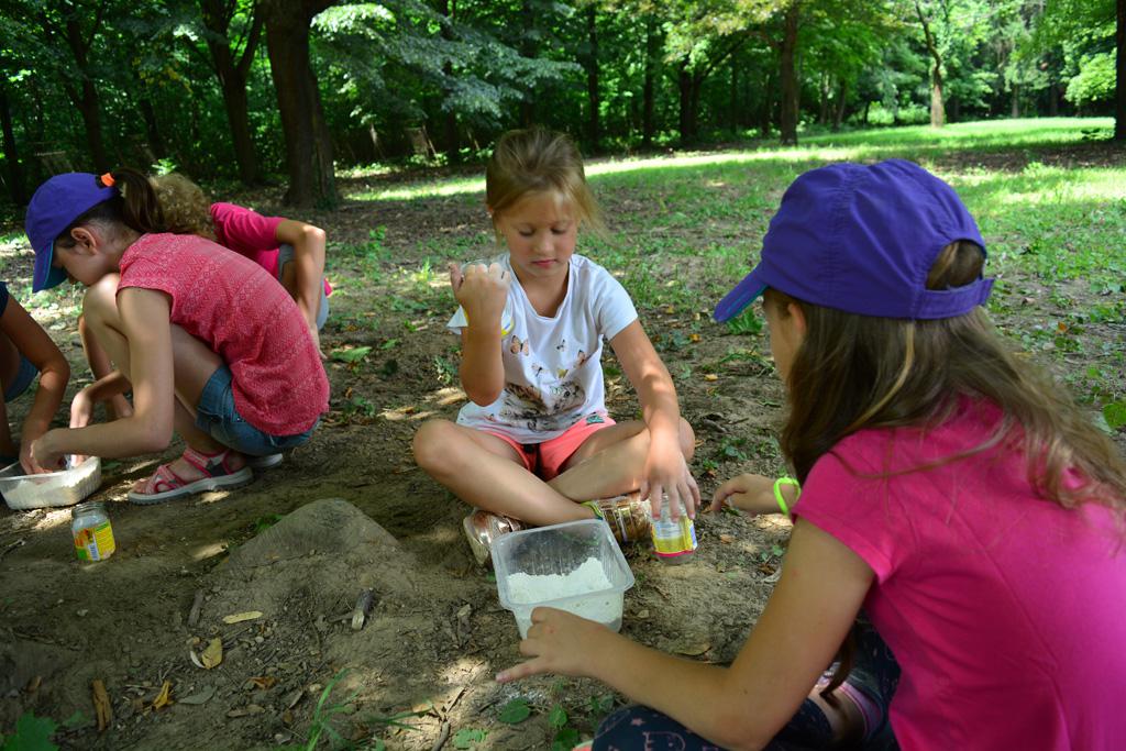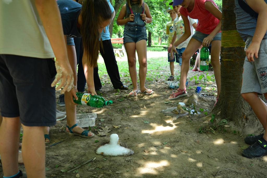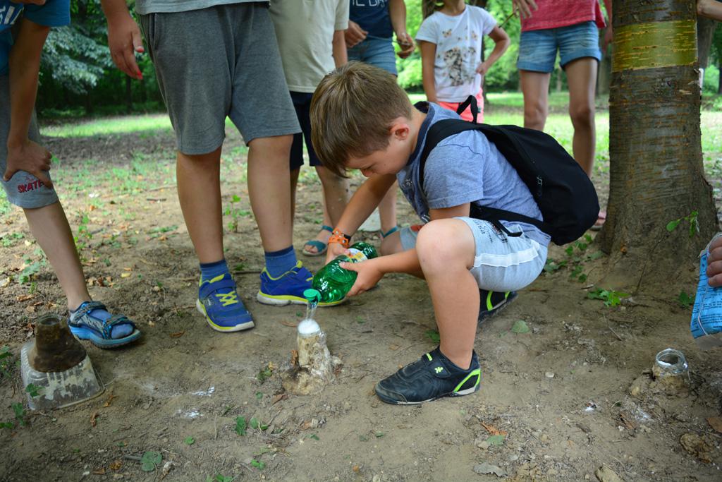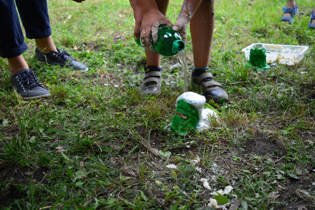 Megnézhettük mit is rejt egy cserkésztáska, s hogyan tájékozódhatunk az erdő közepén. Délután vulkánokat készítettünk, amik ki is törtek, majd a gyógynövénykertben sétáltunk, ültettünk, s fűszernövényeket kóstoltunk.