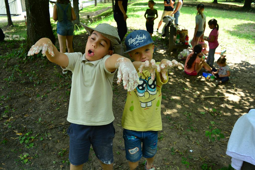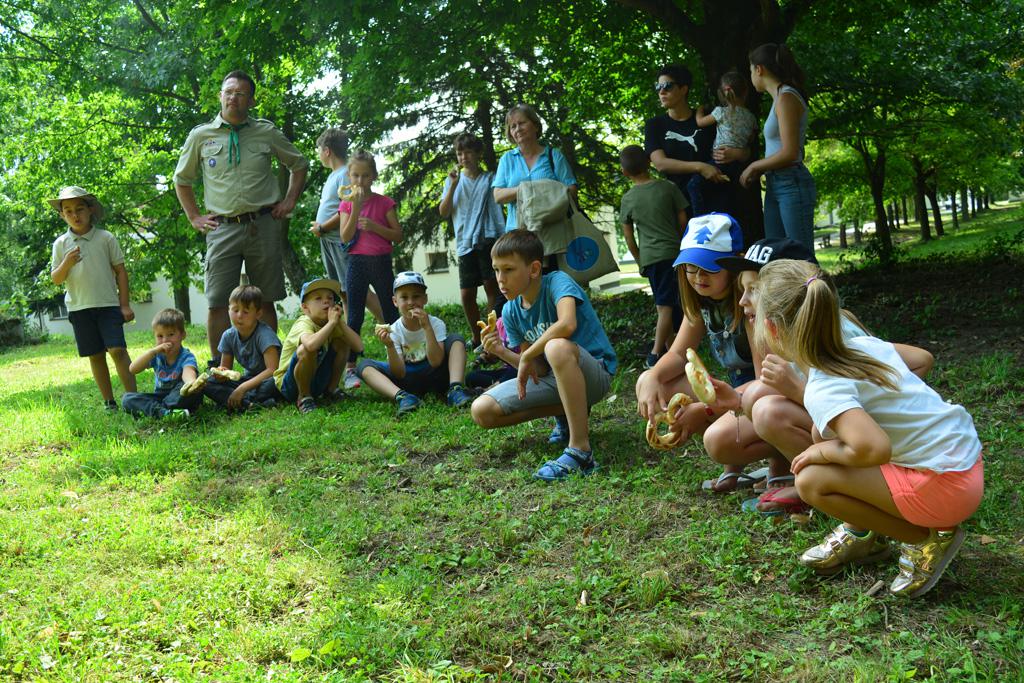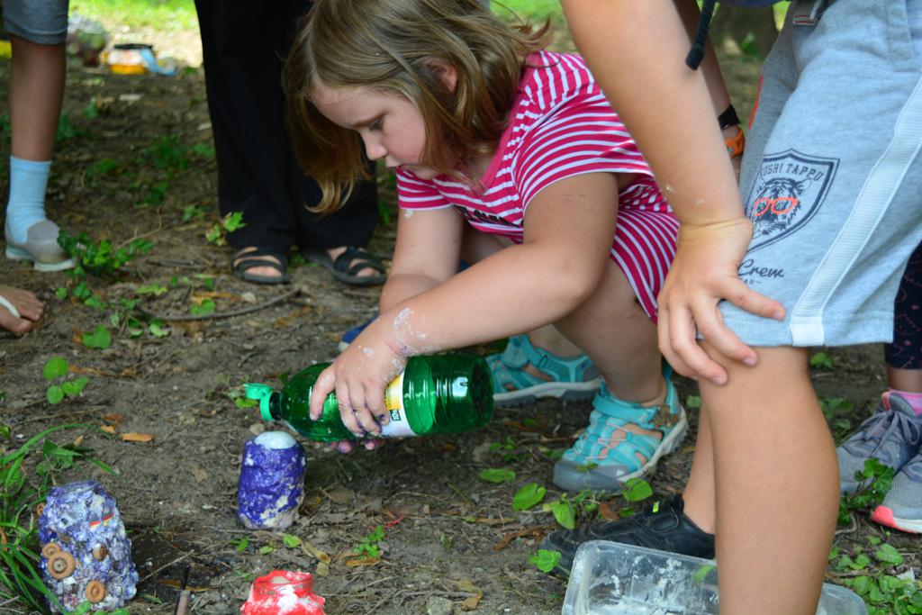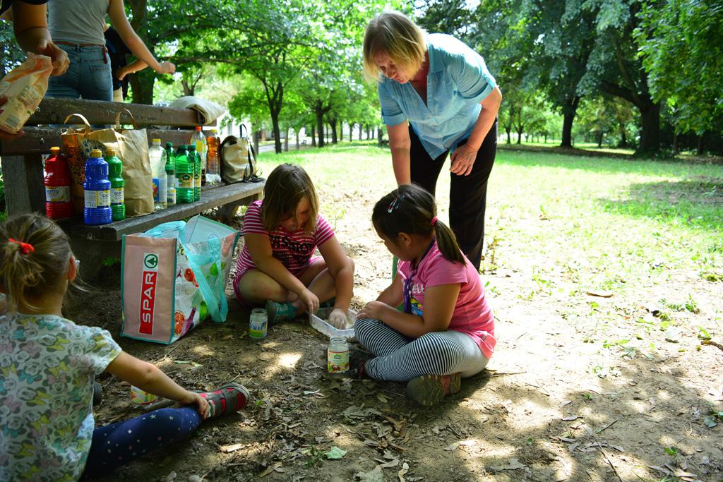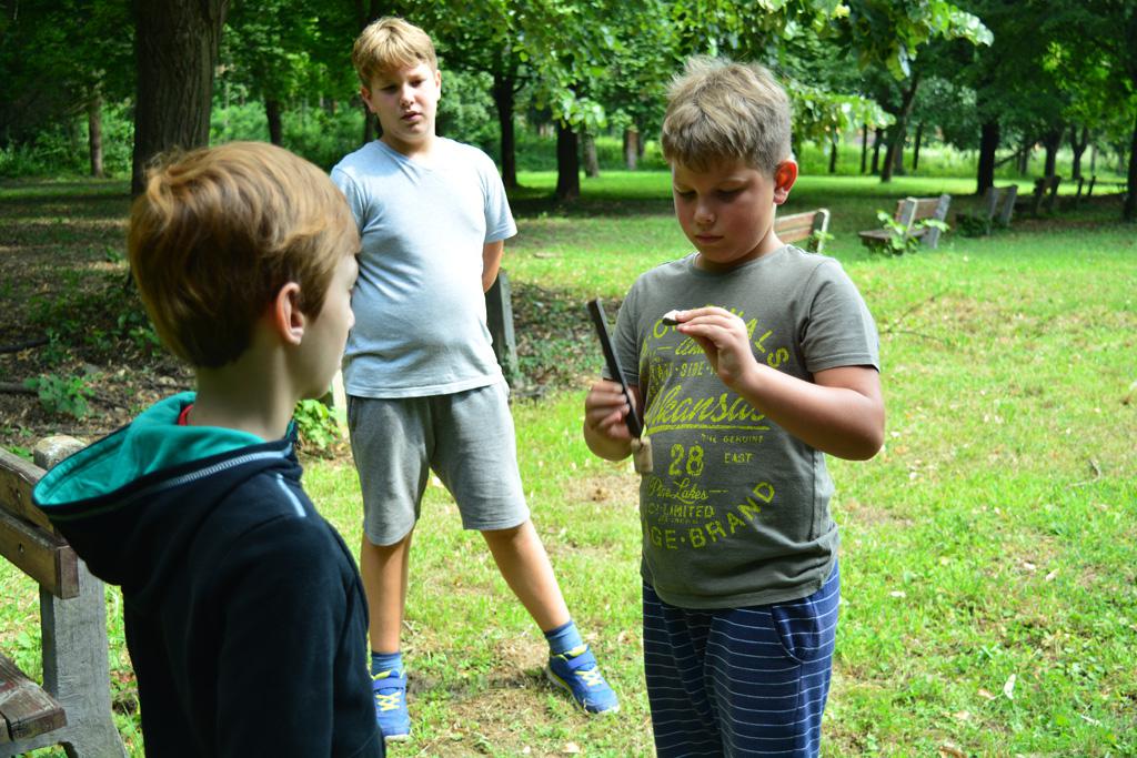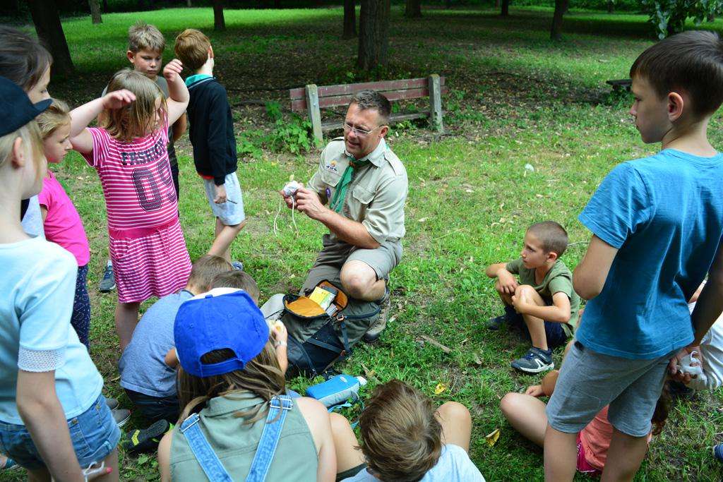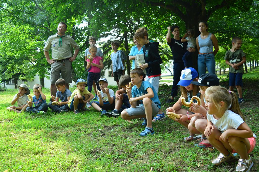 Megnézhettük mit is rejt egy cserkésztáska, s hogyan tájékozódhatunk az erdő közepén. Délután vulkánokat készítettünk, amik ki is törtek, majd a gyógynövénykertben sétáltunk, ültettünk, s fűszernövényeket kóstoltunk.