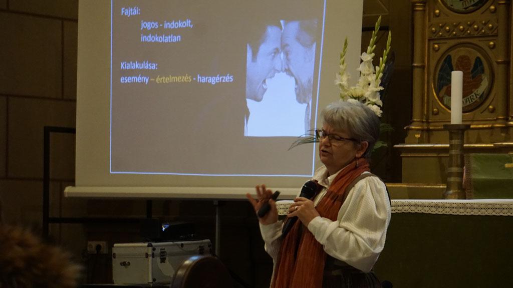 Uzsalyné dr. Pécsi Rita neveléskutató tartott előadást október 19-én az evangélikus templomban. Ezúttal a harag kialakulásáról, fajtáiról hallhattak az érdeklődők, s megismerkedhettek ezek kezelési módszereivel is.