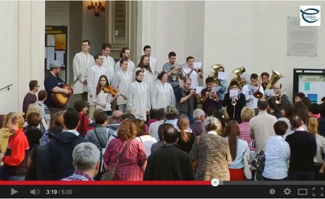 A flashmobban (villámcsődület) az „Erős vár a mi Istenünk” Luther-éneket Johann Sebastian Bach harmonizálásában szólaltatta meg az énekkar, az összekötő zene Felix Mendelssohn Reformáció szimfóniájának témáira épült.