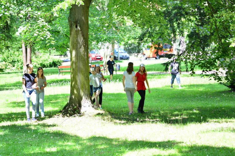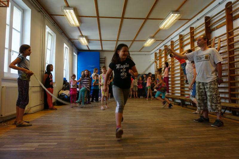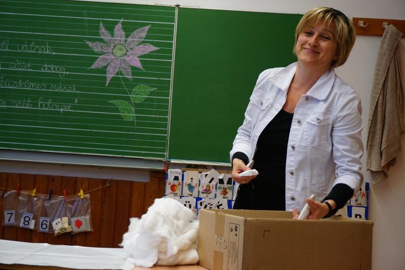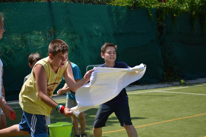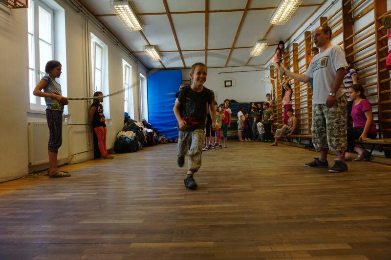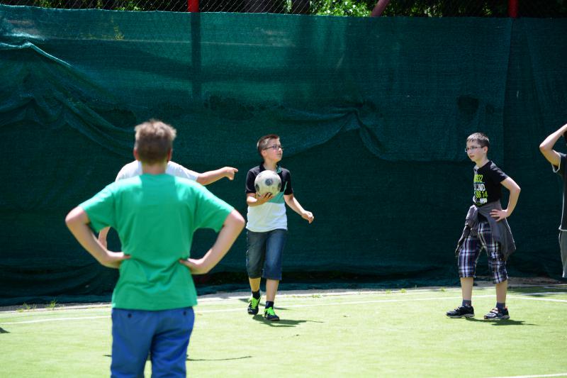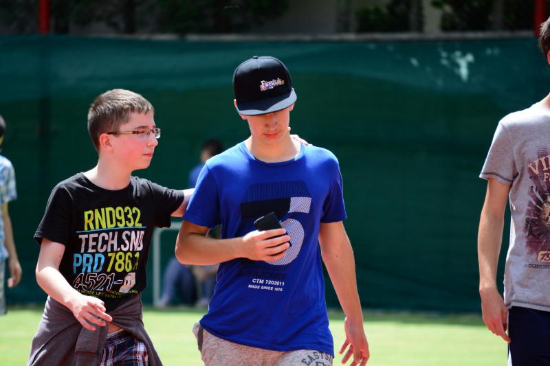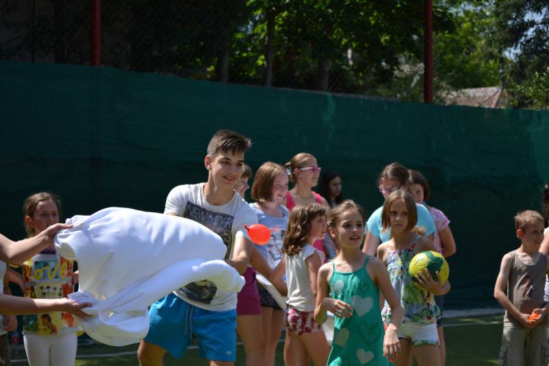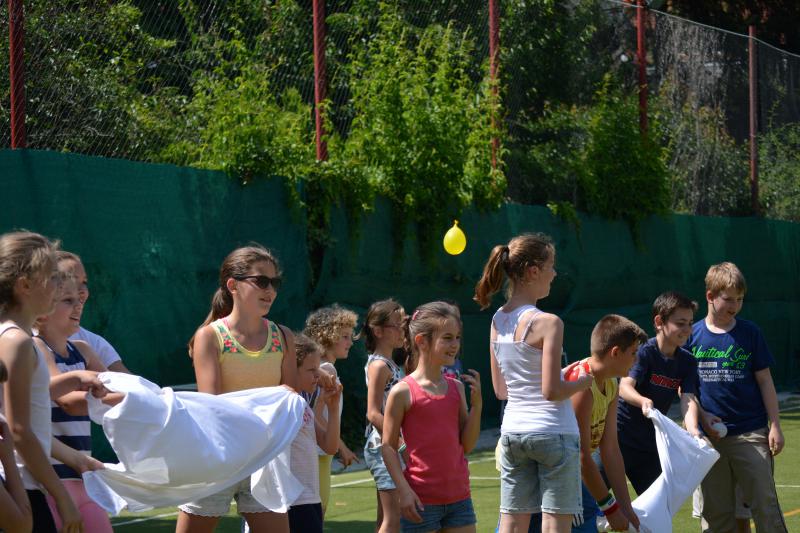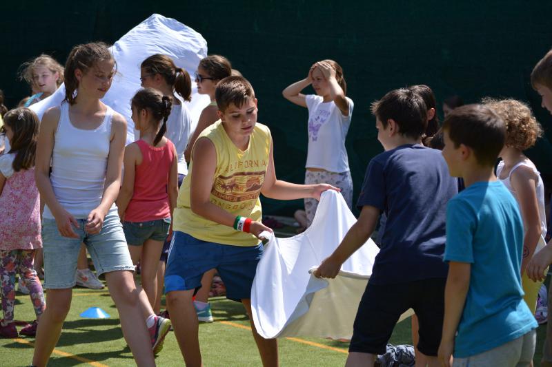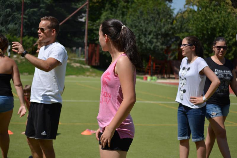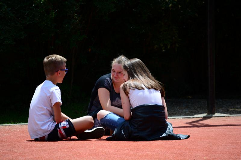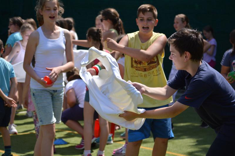 Délután az iskola udvaron Zsolti bácsi és Eszter néni vezetésével sportvetélkedőn vettek részt a gyerekek.