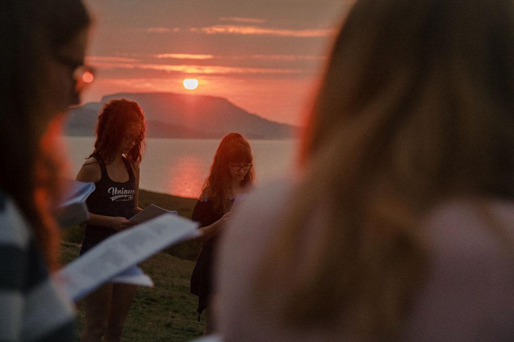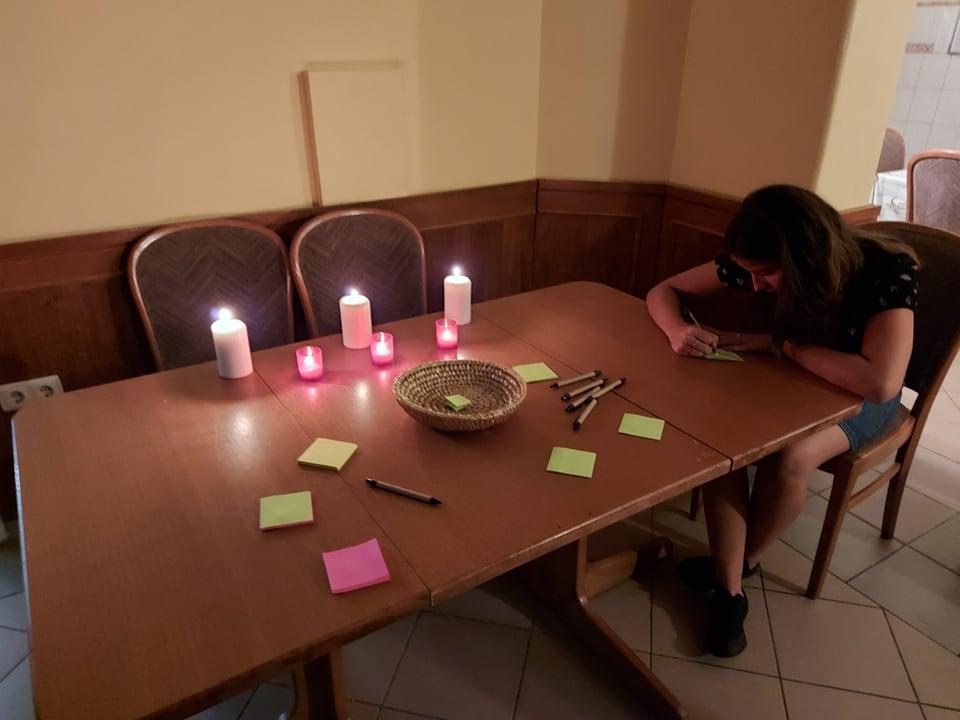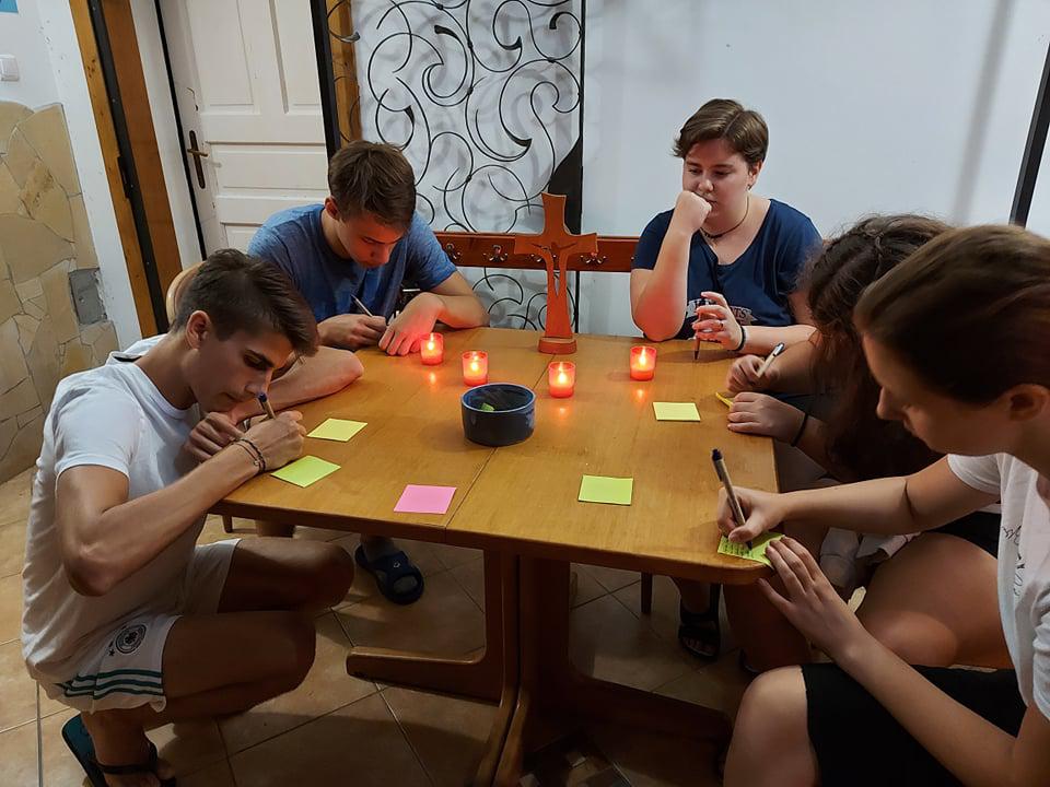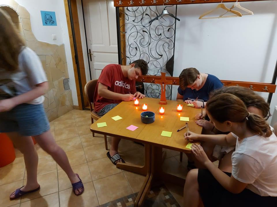 Míg a TS csoport az egység-kétség-elszakítottság témát folytatta, az ifisek hol az ő munkájukat segítették csoportmunkában, hol külön foglalkozáson beszélgettek kapcsolatokról, értékekről, Istentől. Az idei tábor egyik fénypontja a vasárnap hajnali áhítat volt: egy kelta keresztény reggeli liturgia végigimádkozásával adtunk hálát az új napért a Szentháromság Istennek.