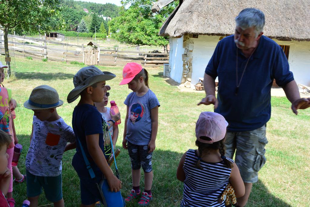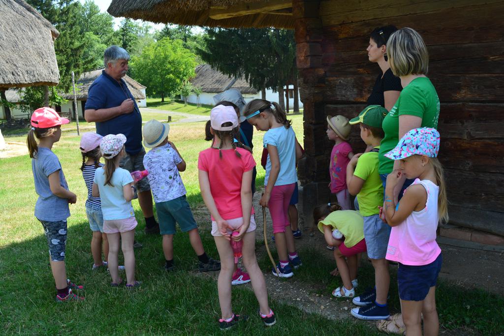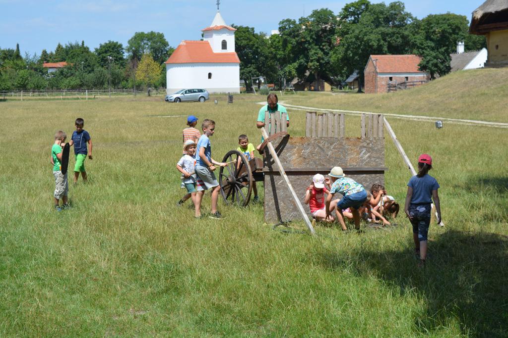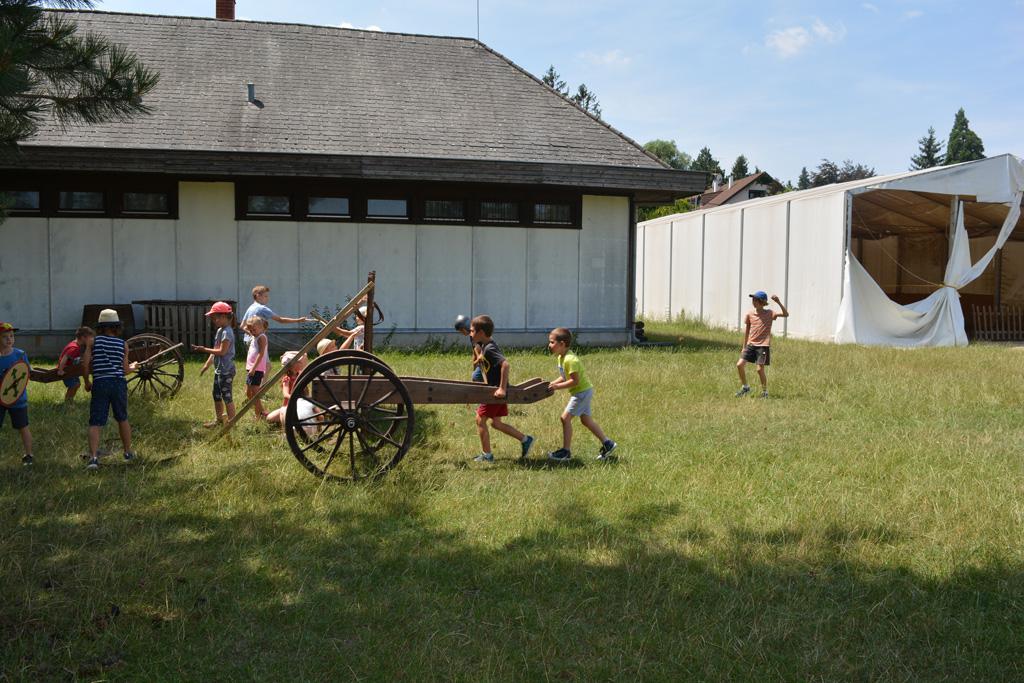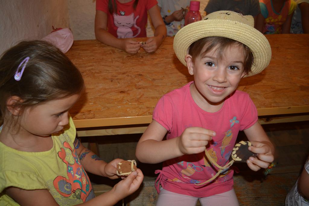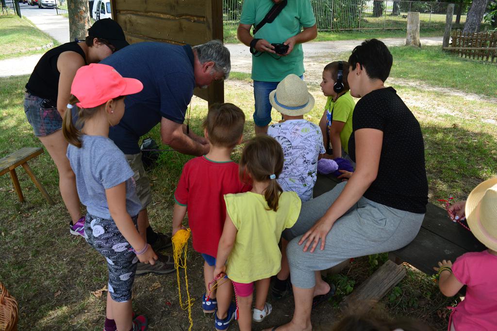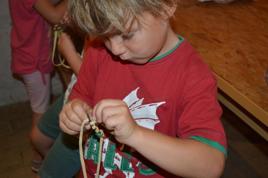 Szerdán a napindító áhítatot már a Múzeumfaluban tartottuk, miután a Skanzen Felsőszölnöki házában kialakítottuk a napi bázisunkat. A táborozók délelőtt a különböző házakkal, régi bútorokkal és eszközökkel ismerkedhettek, és könyvjelzőt is készíthettek. Az ebédünk is helyben készült: gulyásleves és langalló volt a napi menü. Délután kötélverés, körmönfonás és madárles volt a programok között. Természetesen ezen a napon sem maradhattak el a labdajátékok sem, sőt, a hely adottságait kihasználva, még egy békés végkimenetelű harcra is sor kerülhetett. Igazán szép napot töltöttünk a Skanzenben, ahol szebbnél szebb karkötők és könyvjelzők is készültek.