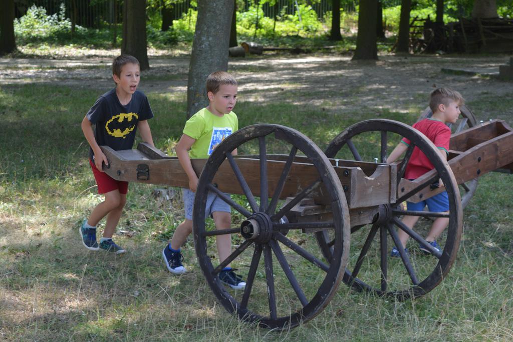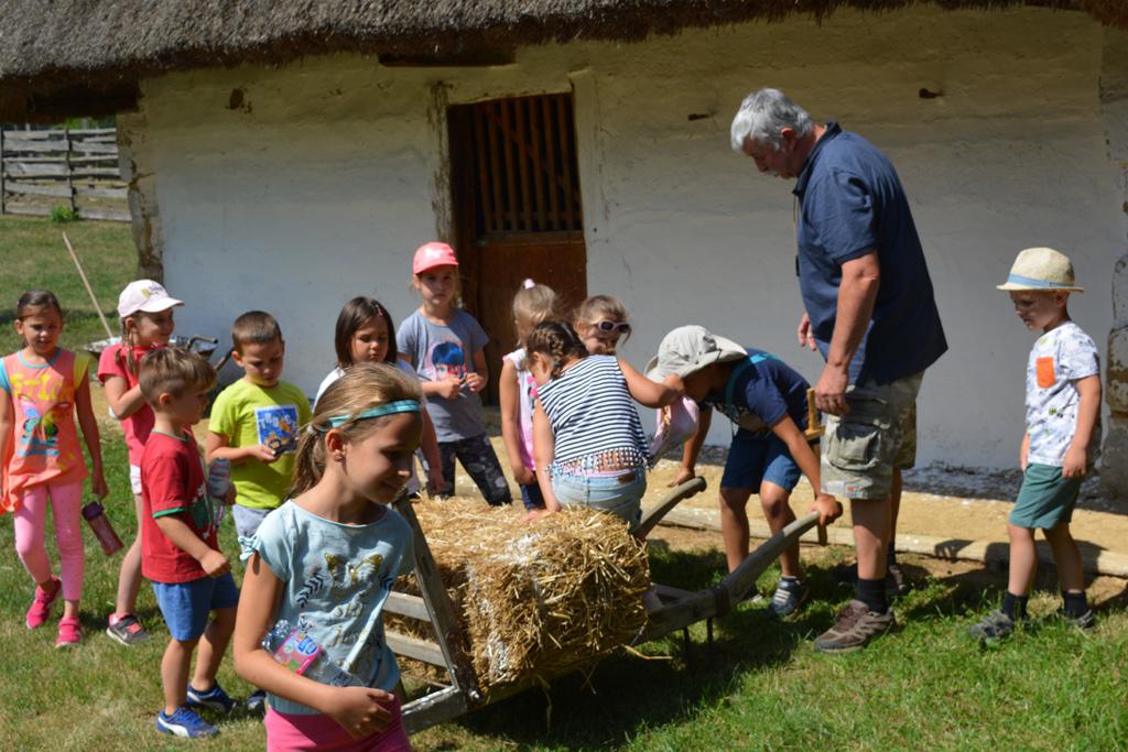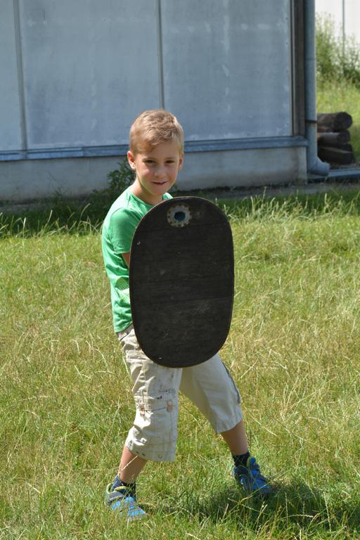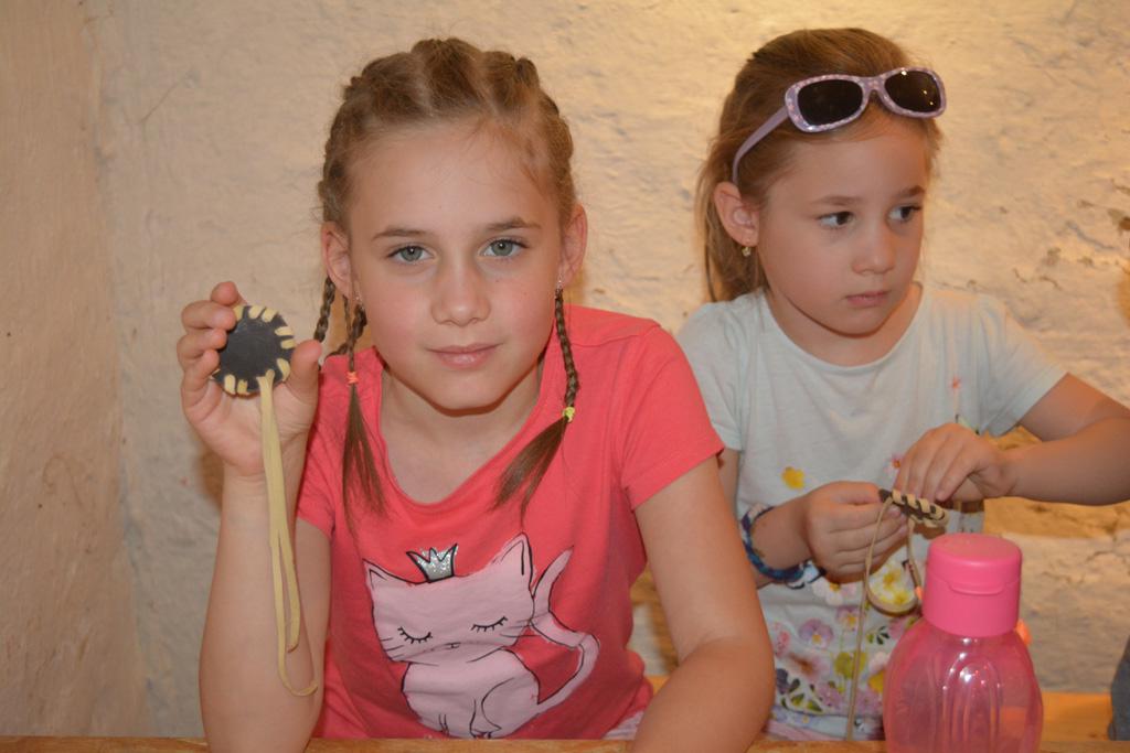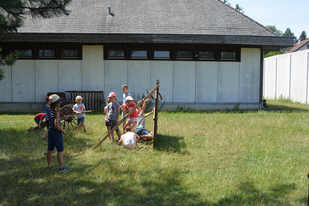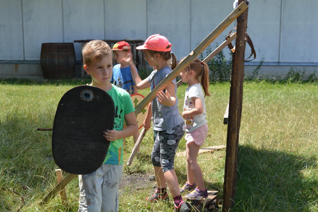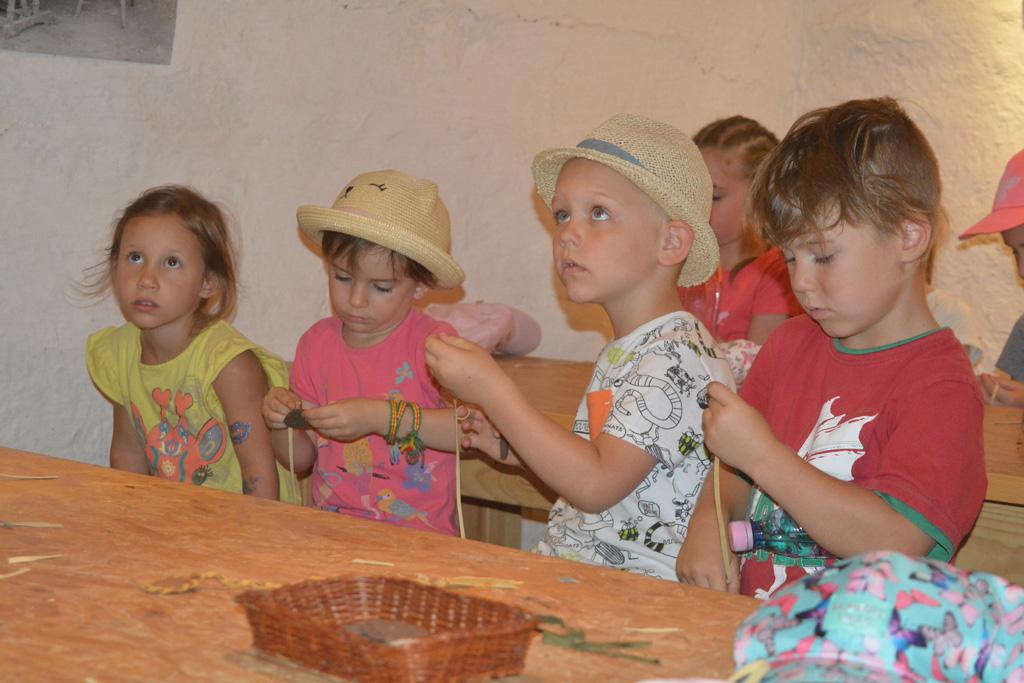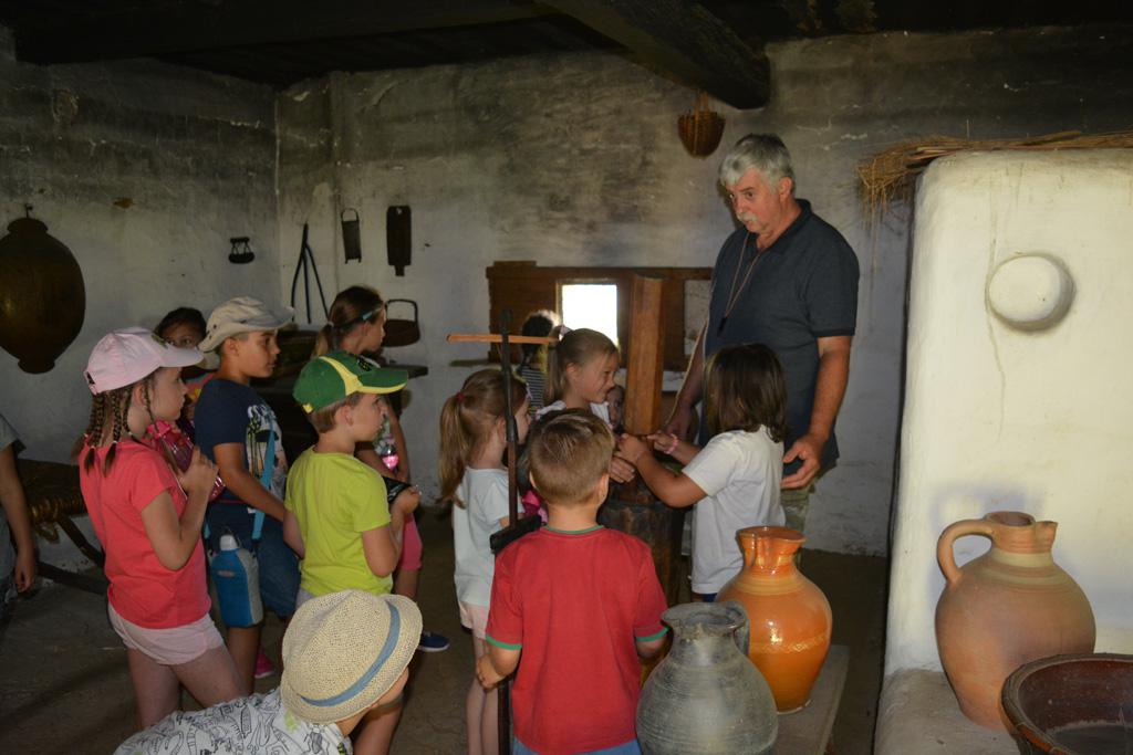 Szerdán a napindító áhítatot már a Múzeumfaluban tartottuk, miután a Skanzen Felsőszölnöki házában kialakítottuk a napi bázisunkat. A táborozók délelőtt a különböző házakkal, régi bútorokkal és eszközökkel ismerkedhettek, és könyvjelzőt is készíthettek. Az ebédünk is helyben készült: gulyásleves és langalló volt a napi menü. Délután kötélverés, körmönfonás és madárles volt a programok között. Természetesen ezen a napon sem maradhattak el a labdajátékok sem, sőt, a hely adottságait kihasználva, még egy békés végkimenetelű harcra is sor kerülhetett. Igazán szép napot töltöttünk a Skanzenben, ahol szebbnél szebb karkötők és könyvjelzők is készültek.