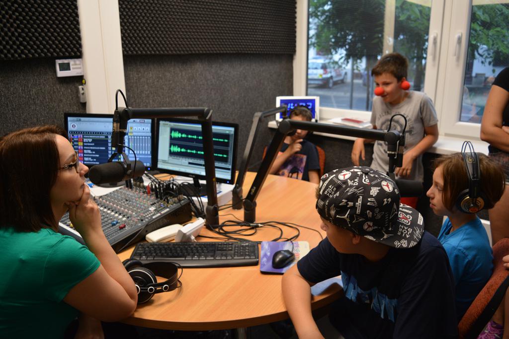 A természetközeliségből visszatérve a "városba", a csütörtöki napon a média világán keresztül szerezhettek élményeket a táborozók. Az áhítatot követően a Szombathelyi Televízió stúdiójába látogattunk el, ahol betekintést nyerhettünk a tévé vezérlőjében folyó munkálatokba, megtudhattuk, honnan is tudja a híradós, hogy mit kell mondania vagy hogy hol foglalnak helyet a híres sportolók, amikor egy beszélgetésre hívják meg őket egy műsorba. A nap délutáni részét két csoportban folytattuk. Míg a csoport egyik fele a Credo Rádió stúdióját tekintette meg, addig a csoport másik fele a Szombathelyi Evangélikus Szeretetszolgálatért Alapítvány irodájában várakozott, ahol természetesen az alapítvány Dr. Bohóc Mosolyszolgálatának piros bohócorrai aratták a legnagyobb sikert. A rádió is igen népszerű volt. A gyerekek kipróbálhatták magukat a mikrofonok mögött; a velük készült interjúk a Diakónia Hangja című műsorban volt hallható. (ismétlés: vasárnap 16 órától)
