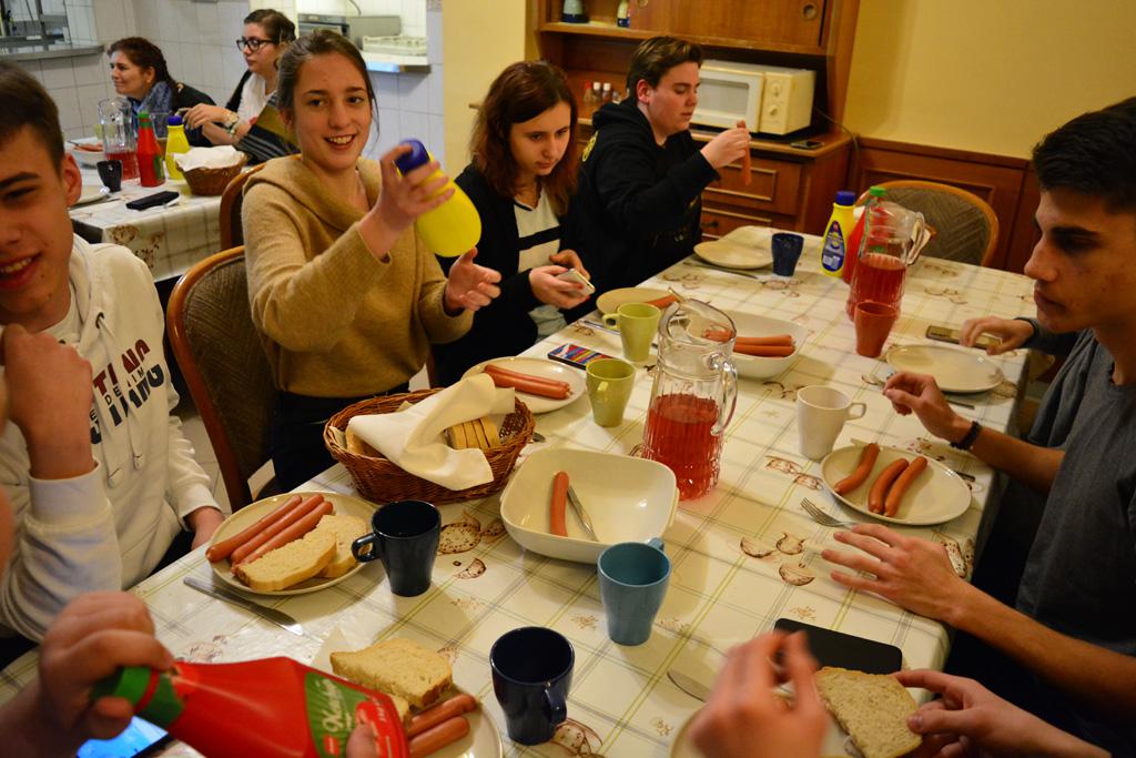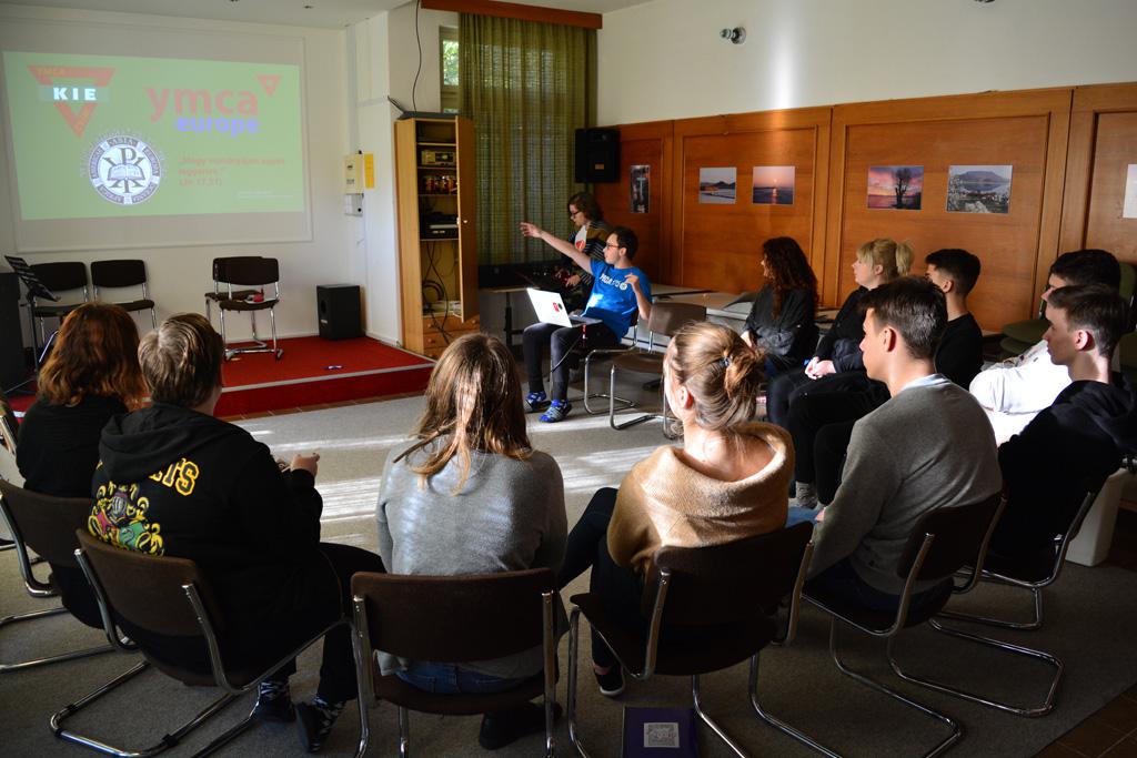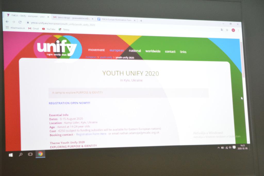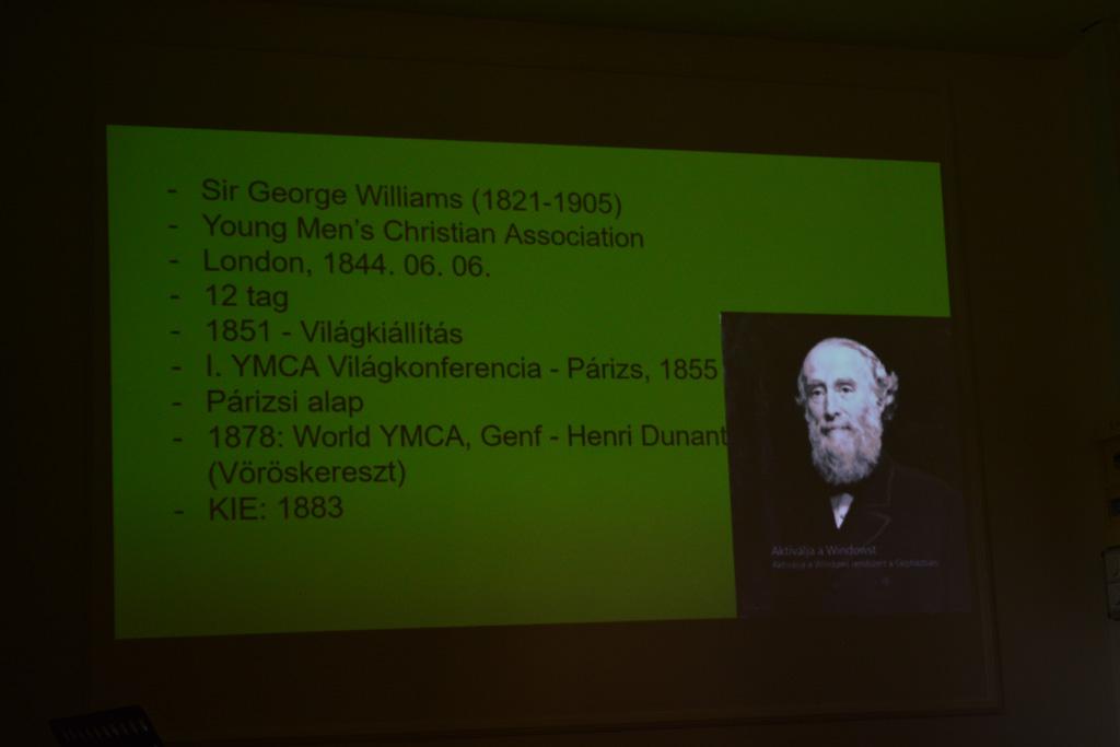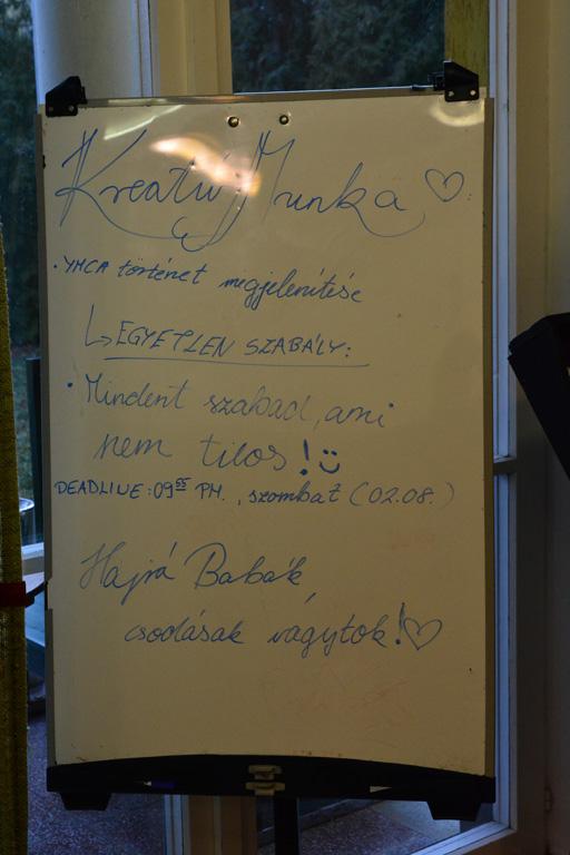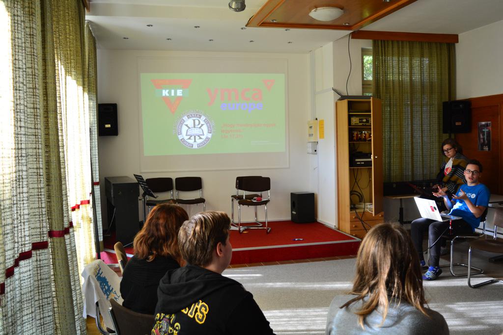 A szombat délutáni programot Marton Tamás, a Sóvár vezetője kezdte, aki az 1997-es kiskőrösi Ten Sing Fesztivál hangulatáról mesélt, és a szervezés kulisszái mögé is bepillantást engedett. A magyarországi TenSing-munka fénykorából inspiráló kiadványokat és dokumentumokat láthattunk. Külön köszönjük azt az ajándékot, amit csoportunk Tamástól kapott: a TS-fesztivál pólót. A nap folytatásában hallottunk a YMCA megalakulásának körülményeiről, a magyarországi KIE történetéről, a KIE munkában rejlő lehetőségekről, belföldi és külföldi csoportokról, munkaágakról, programokról. Külön figyelmet kapott a KIE-ben különösen is nagy szerepet játszó önkéntesség, és a külföldi önkéntesprogramok lehetőségei. Hallottunk a 2020 augusztusában megrendezendő Youth Unifyról, amely a YMCA-n belül működő szervezetnek -melynek célja erősíteni a YMCA munkában a keresztyén küldetést és identitást- az ifjúsági fesztiválja. A csapat feladatot is kapott a szabadidőre: dolgozzák fel a YMCA megalakulását kreatív, TenSinges formában.