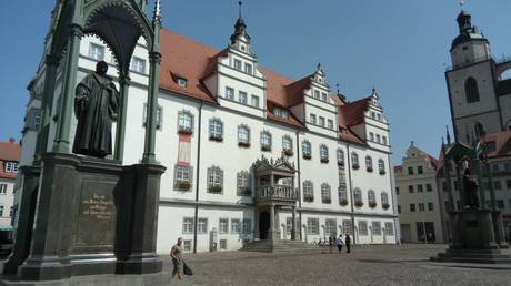 A fárasztó nap után jó és tartalmas esti beszélgetések közben készülhettünk a következő nap élményeire. Csütörtökön Wittenbergben a templomok megtekintését követően, a Luther és Melanchthon ház kiváló kiállításait élvezhettük, és a nagyszerűen felújított és ismét európai jelentőségű látványossággá nemesült Elba menti kisváros utcáit és tereit járhattuk be. Wittenberg a 16. századi Európa egyik legjelentősebb szellemi központjává emelkedett a reformátori tevékenység, az egyetemi és kulturális szerepe miatt. Tisztelettel adóztunk Stöckel, Dévai Bíró, Honterus, vagyis Hungária és Pannónia nemes peregrinusai előtt, akik Luther és Melanchthon katedrája alatt szívták magukba a reformáció tanait és lelkiségét, majd hazatérve a magyarországi reformáció nagyjai lettek. Vas megyeiként különös áhítattal álltunk meg a vártemplom közvetlen közelében elhelyezett Sylvester János emléktábla alatt.