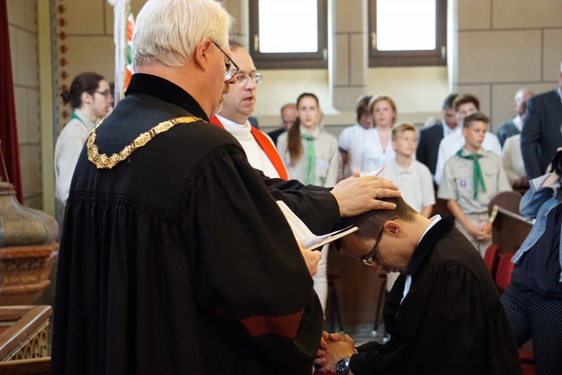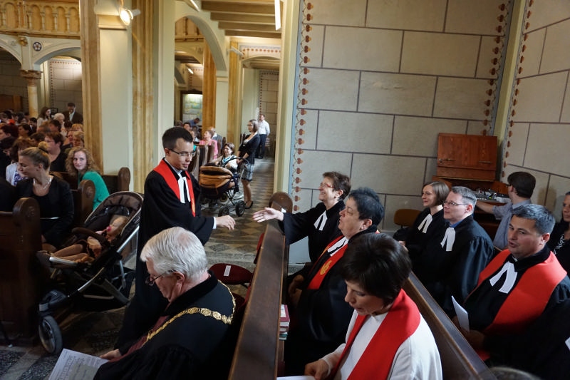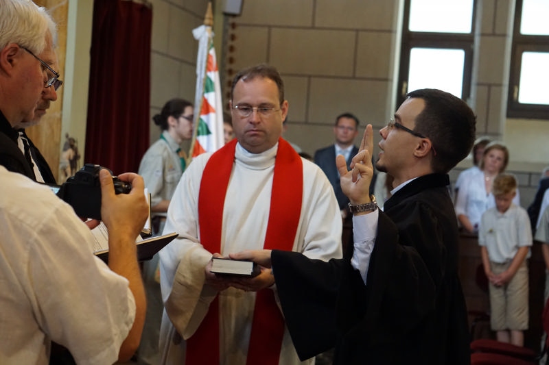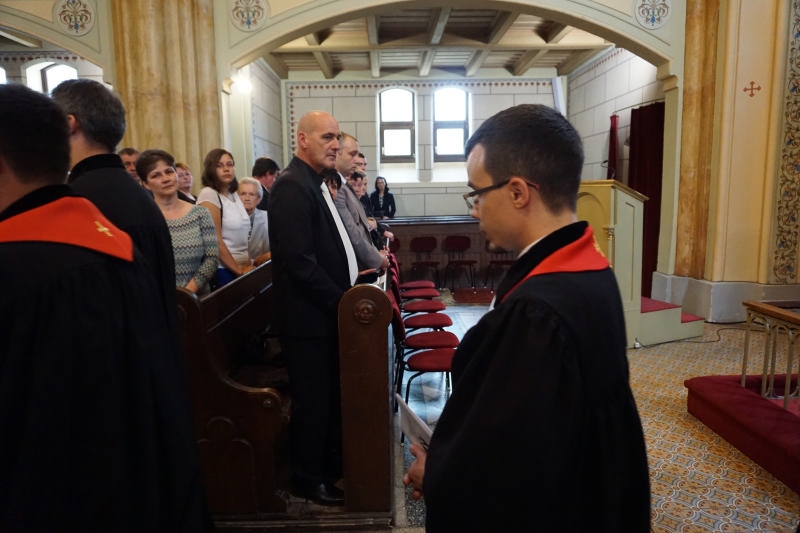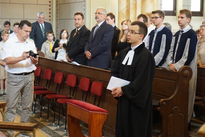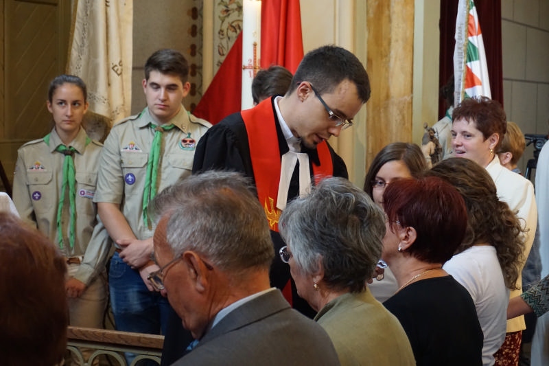 Szombathely – Megtöltötte a templomot a szombathelyi gyülekezet a közöttük szolgáló hatodéves, Halasi András József lelkésszé avatásának ünnepén, június 27-én, szombaton. Az istentiszteleten Szemerei János, a Nyugati (Dunántúli) Egyházkerület püspöke hirdette Isten igéjét.