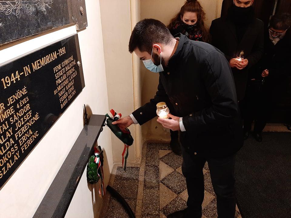 A Honderű Asztaltársaság, a Klapka György Lovas Polgárőr és Hagyományőrző Egyesület, valamint a Polgárok a Városért Egyesület és a Rákóczi Szövetség Vas megyei szervezetének néhány képviselője találkozott a Szentháromság szobornál, ahol a Himnusz eléneklésével kezdődött a megemlékezés, majd mécsesekkel átvonultak az evangélikus templom előterében lévő emléktáblához. Ott Menyes Gyula evangélikus lelkész mondott imát az áldozatok emlékére, majd a különböző szervezetek képviselői elhelyezték koszorúikat. Szózattal zárult az ünnepség.