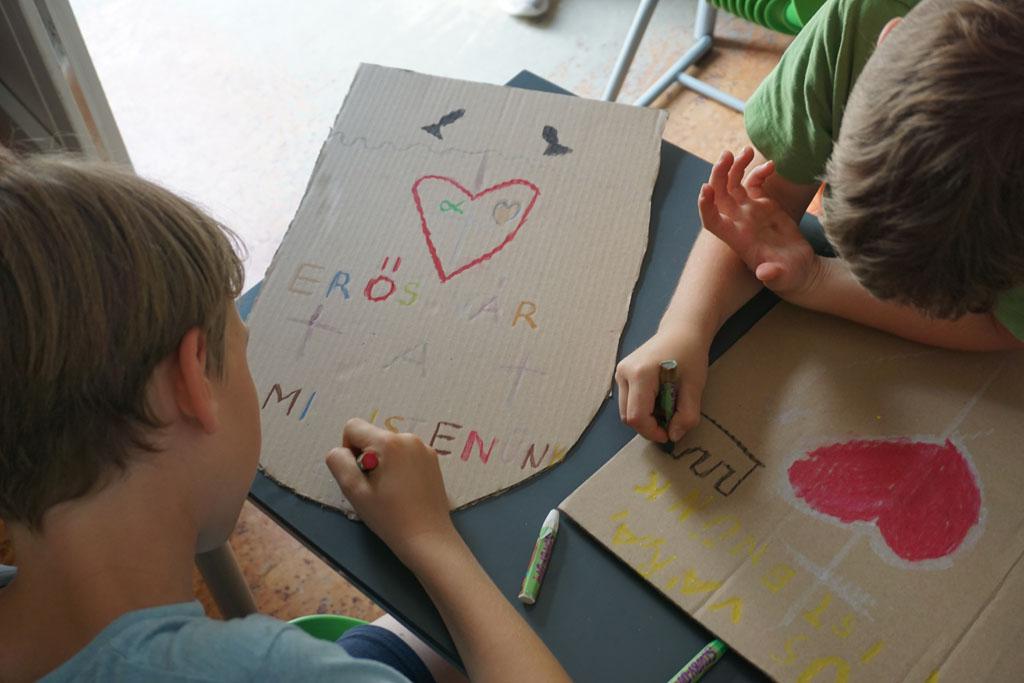 A csoportfoglalkozásokon arról is beszélgettek, hogy nem csak a saját erősségeinkre támaszkodhatnak, hanem Isten ígértére, erejére, segítségére is. A gyerekek pajzsot készítettek keresztény jelképekkel, valamint konfliktusmegoldó szerepjátékokat is játszottak.