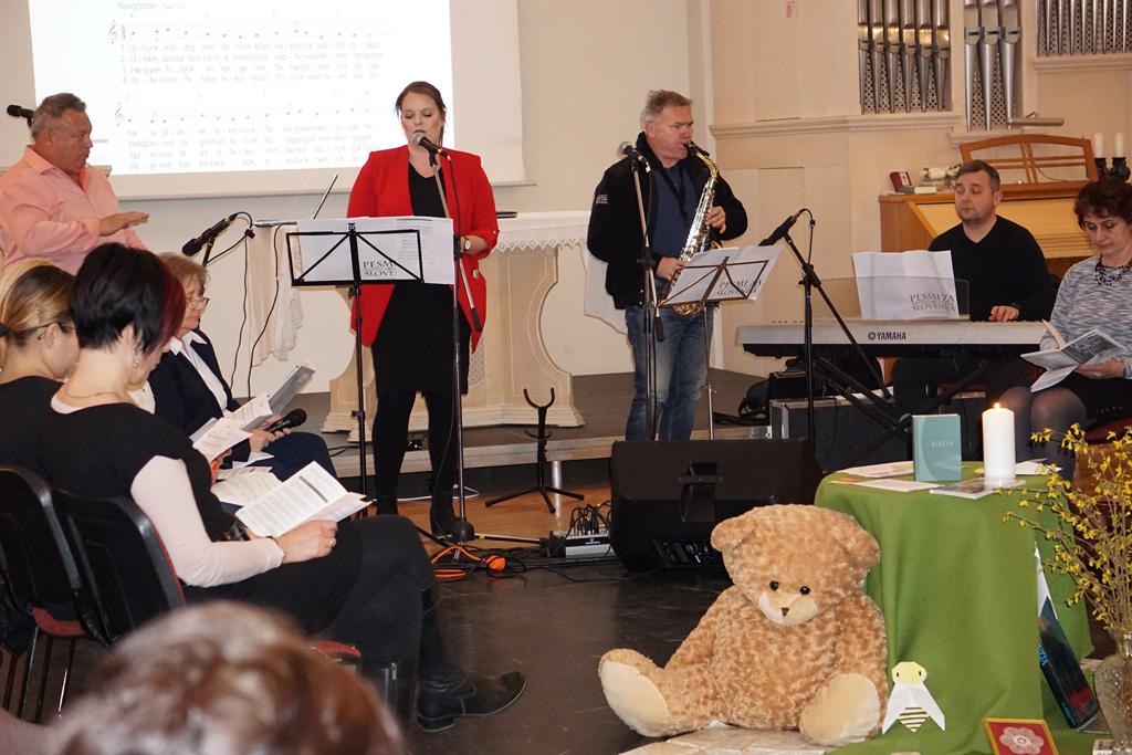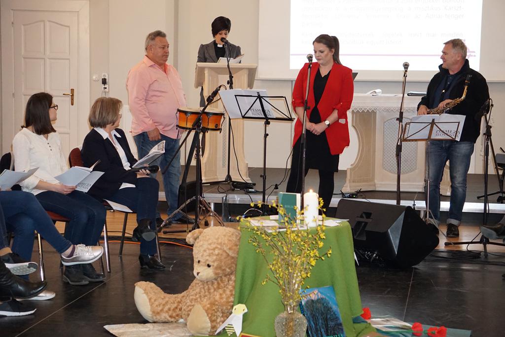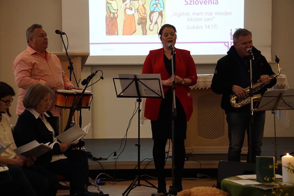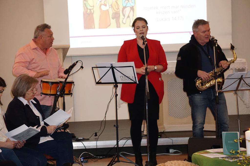 Vendégeink Szlovéniából: Judit Andrejek evangélikus lelkésznő és a SELAH együttes tagjai.