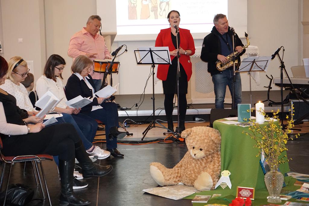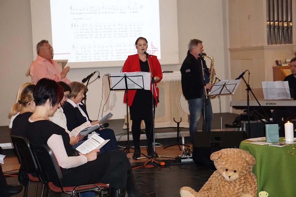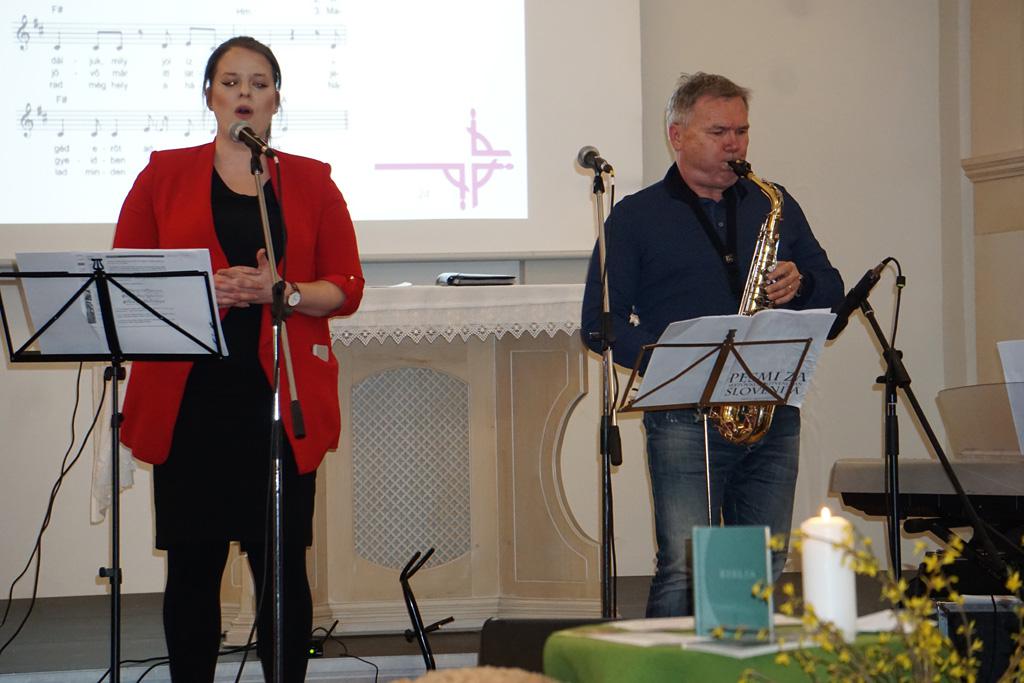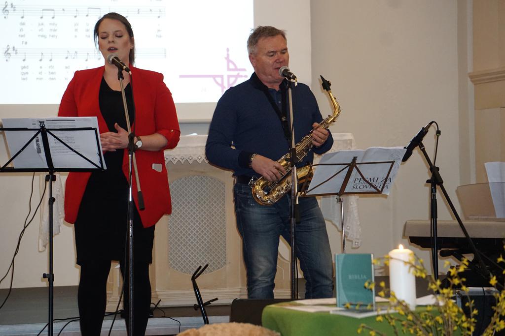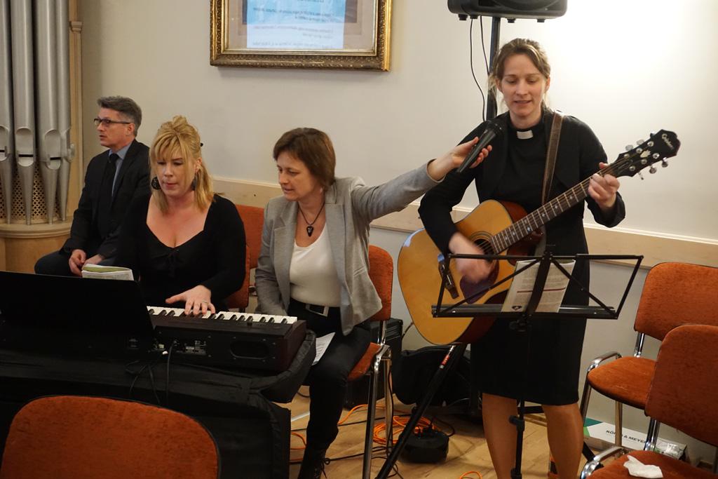 Vendégeink Szlovéniából: Judit Andrejek evangélikus lelkésznő és a SELAH együttes tagjai.