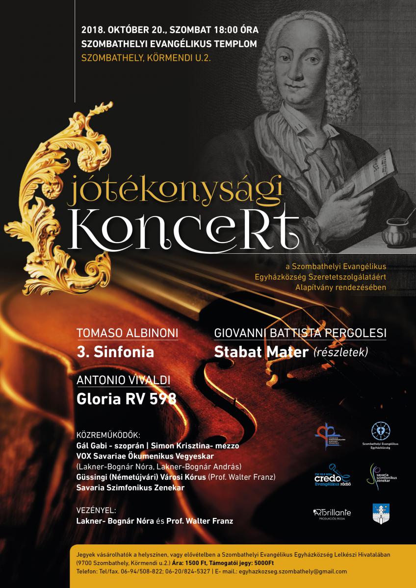 A Szombathelyi Evangélikus Egyházközség Szeretetszolgálatáért Alapítvány idén is megrendezte október 20-án őszi jótékonysági koncertjét, melyen a Savaria Szimfonikus Zenekar tagjai, a VOX Savariae Ökumenikus Vegyeskar és a Güssingi (Németújvári) Kórus közös produkcióját hallhatta a közönség. Szólistaként Gál Gabi (szoprán) és Simon Krisztina (mezzo) közreműködött az alkalmon.
