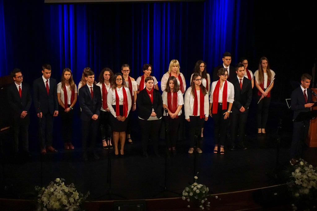 A VOX Savariae Ökumenikus Vegyeskar Lakner-Bognár Nóra vezényletével négy művet énekelt a színpadon. Zongorán kísért Lakner-Bognár András, s közreműködött a Solas Rézfúvós Együttes. Ezt követően Gulyás Gergely miniszter tartott előadást, "A reformáció népeként a hit, az értelem és a kultúra egységében" címmel; majd a Pünkösdi Egyház Zenei Missziójának Égi Szólamok Kórusa zárta az ünnepség első részét.