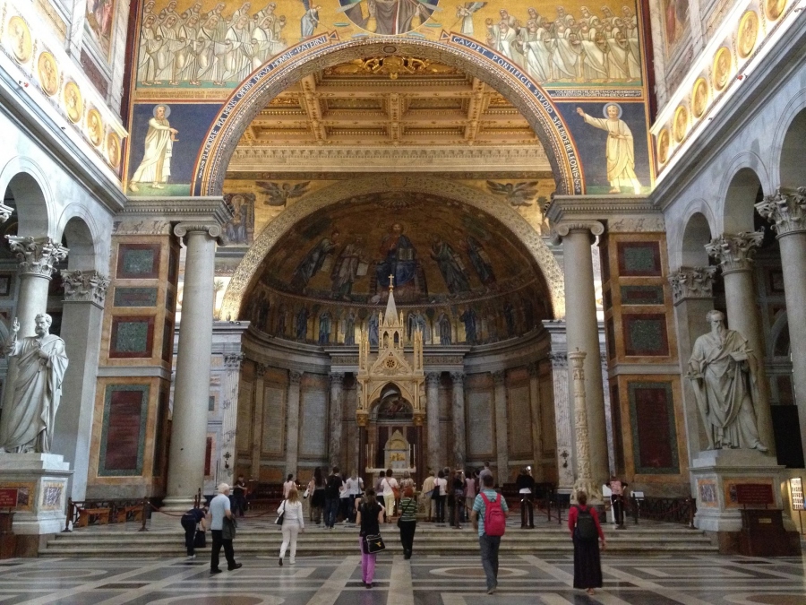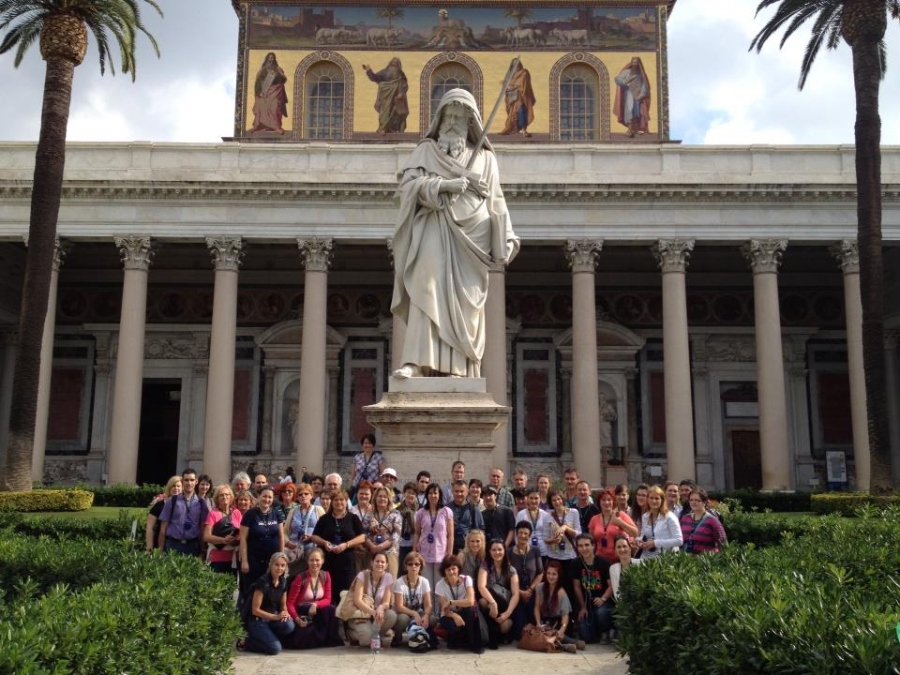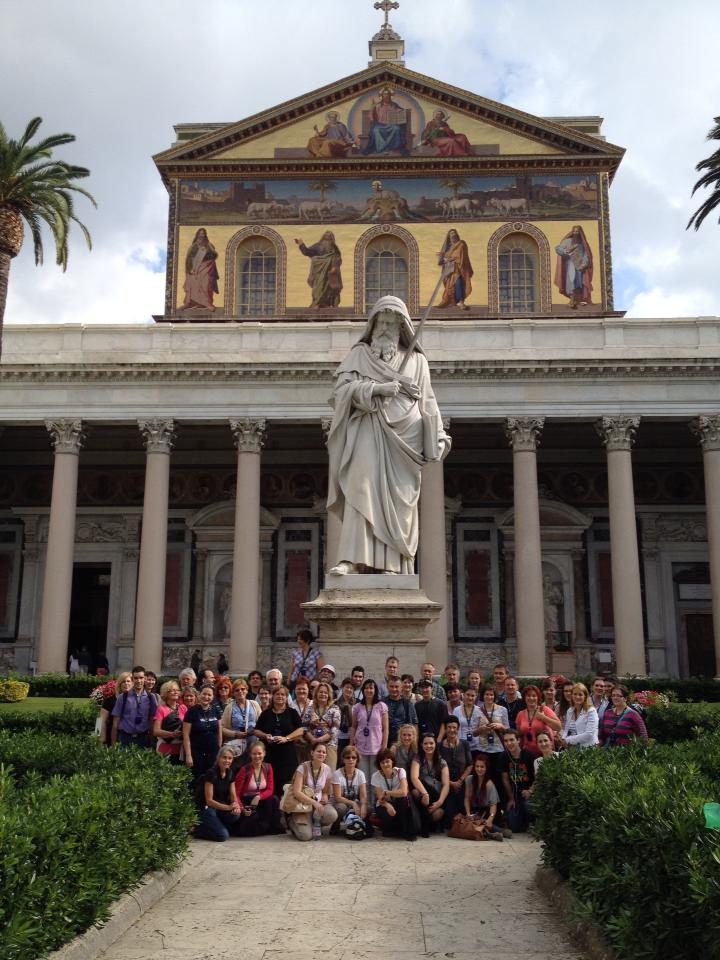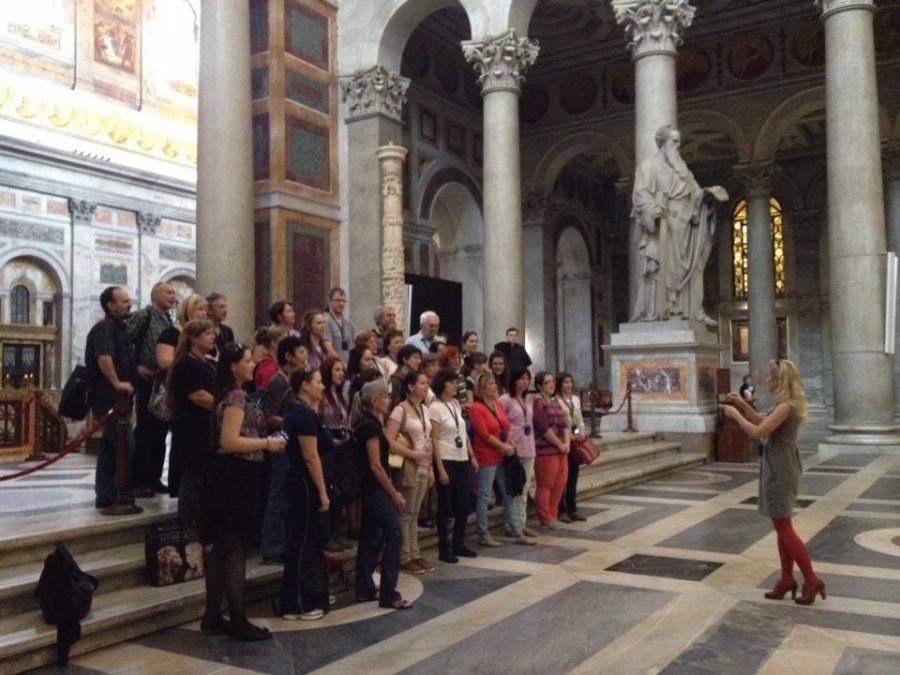 Megérkezésünk első napját városnézéssel indítottuk: első úti célunk a lenyűgöző Szent Pál Bazilika volt. Az ottani atmoszféra egy spontán éneklésre ösztönzött bennünket: megmagyarázhatatlan érzés volt a bazilika oltár előtti lépcsőjén énekelni. A méretek, a hatás, a fények... Legnagyobb meglepetésünkre éppen egy budapesti csoport is jelen volt, így hirtelen egy busznyi magyar közönségnek énekeltünk néhány percet. Csodálatos emlékként őrizzük ezeket a pillanatokat.
