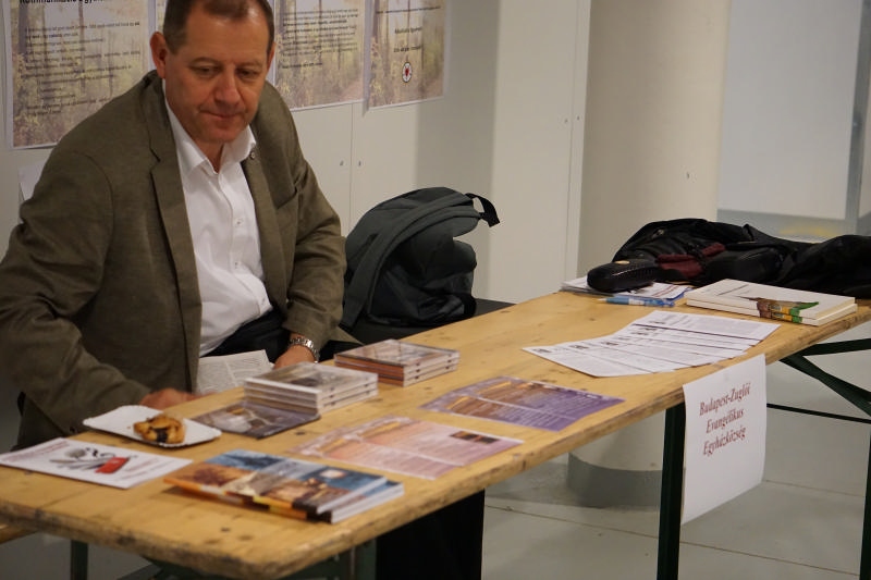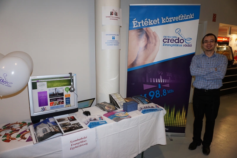 Mindeközben a csarnok folyosóin bemutatkozhattak a gyülekezetek, így a Szombathelyi Evangélikus Egyházközség asztalánál Halasi András várta az érdeklődőket.