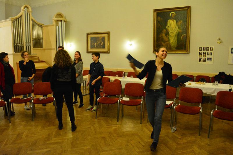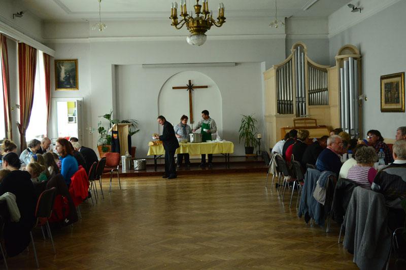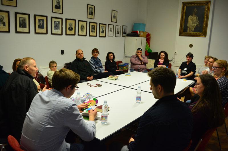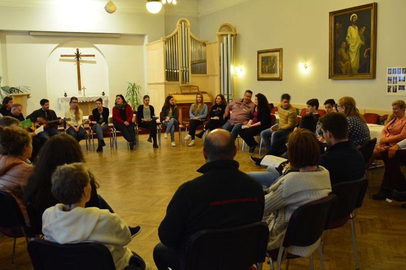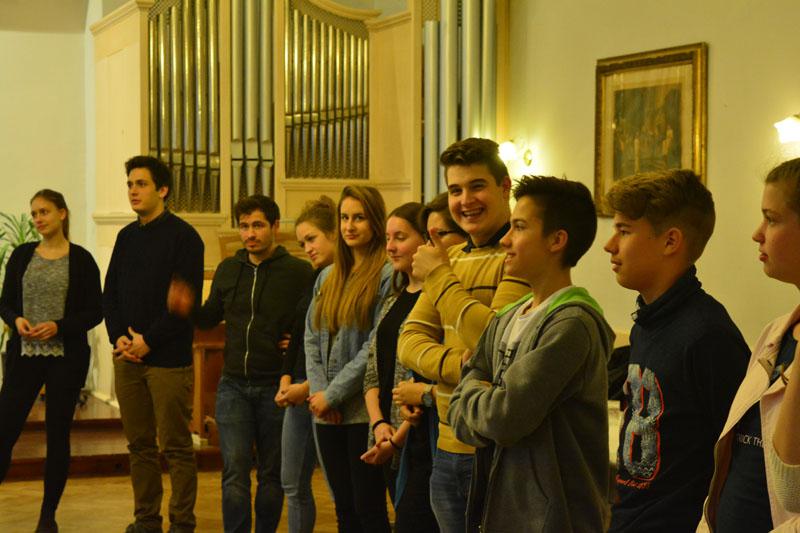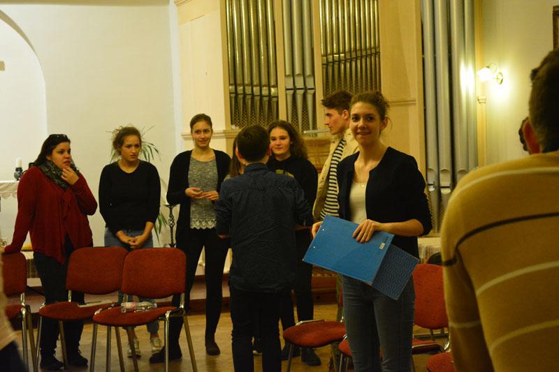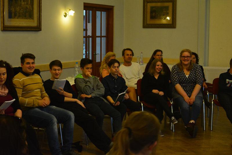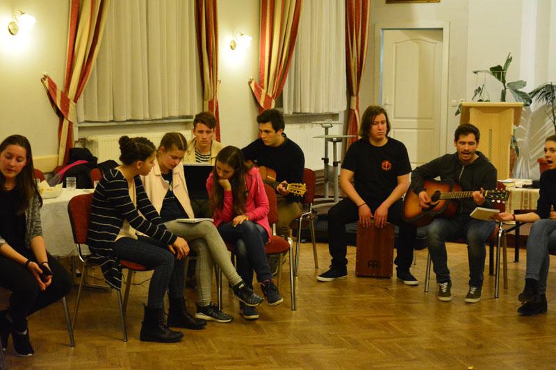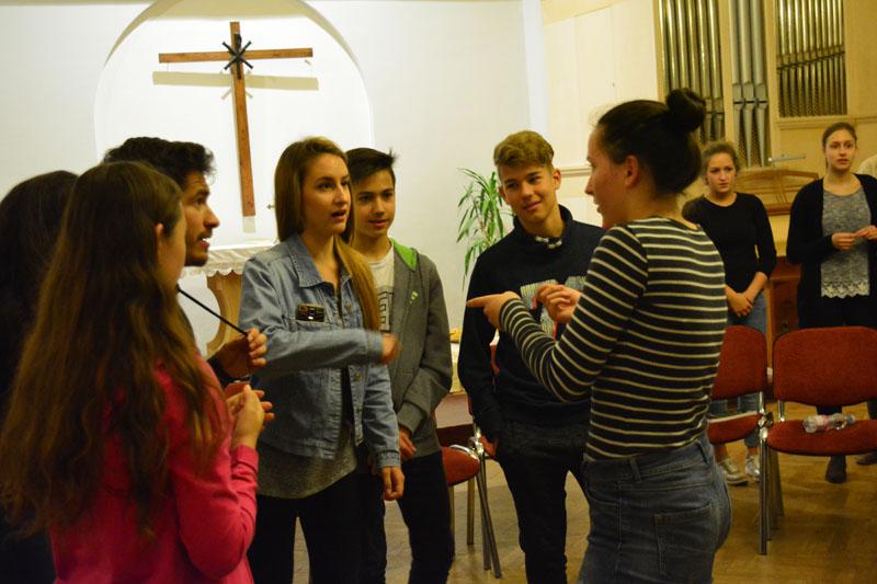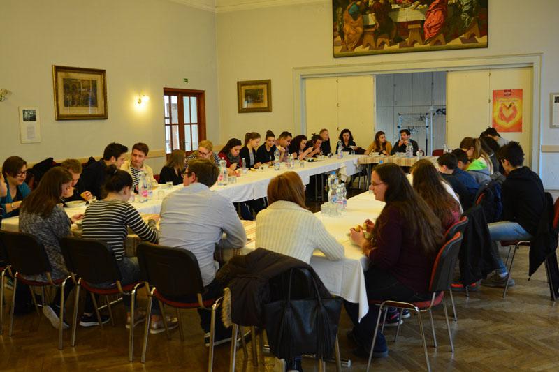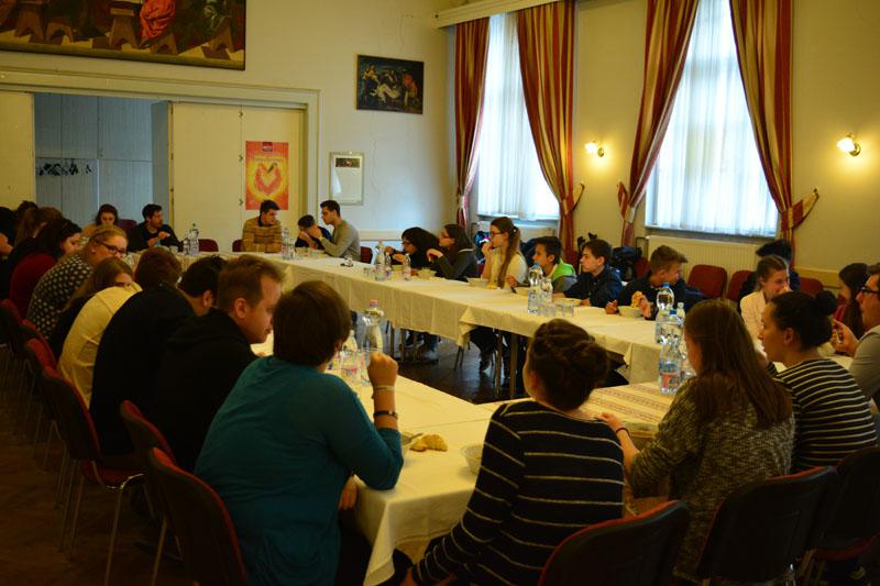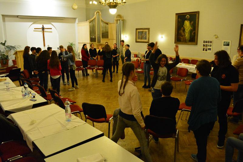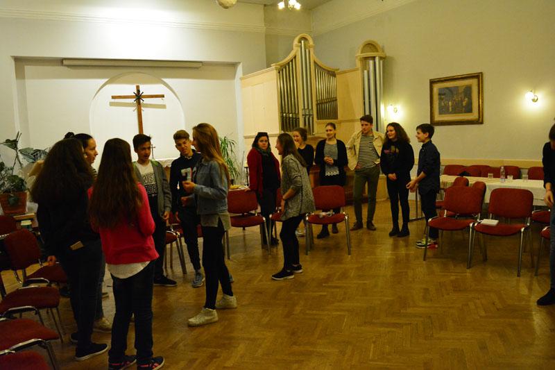 A teológusnap szombaton kezdődött, amikor gyülekezetünk ifjúsági csoportjának tagjai, a konfirmandusok, az Alfa-kör és a Y’s Men tagok a teológushallgatókkal közös vacsorán ismerkedhettek meg. A vacsora után két csoportban folytatódott az este: az ifisek és konfisok részére különböző játékokkal és áhítattal készültek a teológushallgatók, míg a felnőttek dr. Bácskai Károllyal, a teológia Újszövetségi Tanszékének vezetőjével beszélgettek az Alfa-kurzus soron következő témájáról: Miért halt meg Jézus?