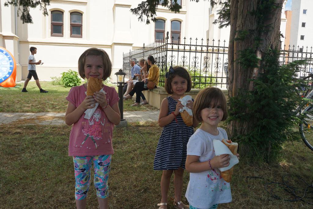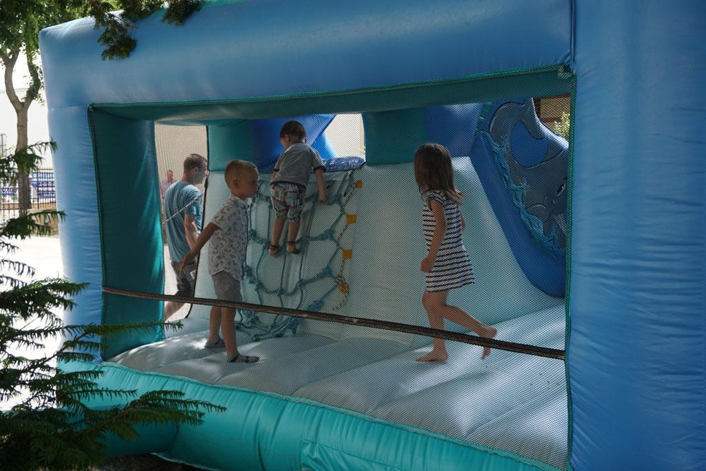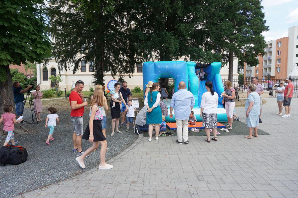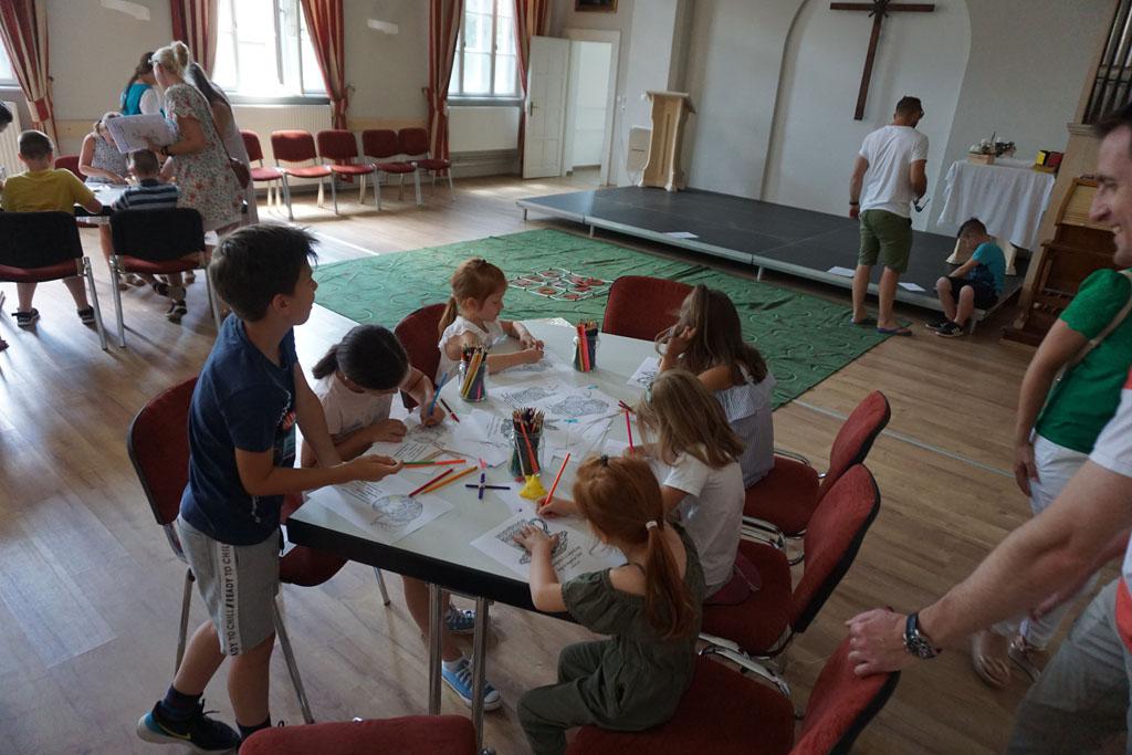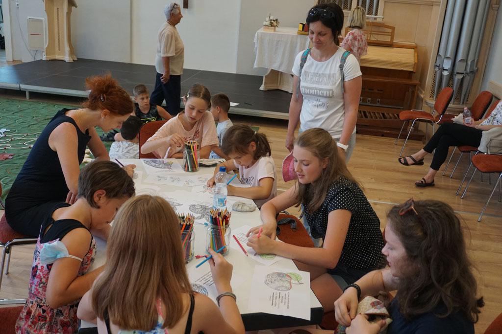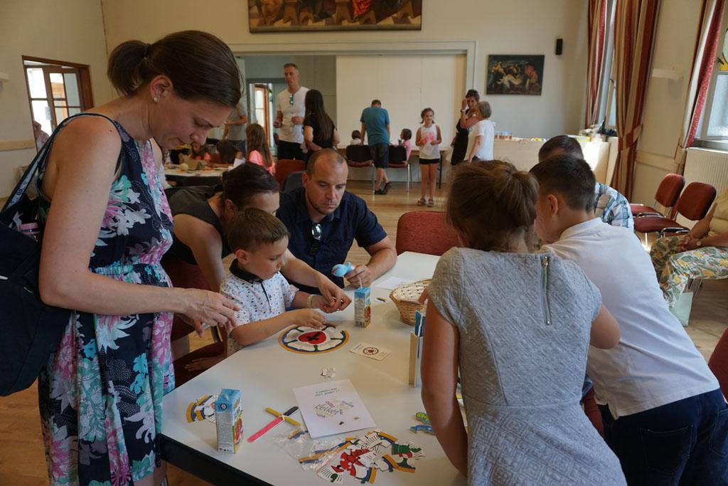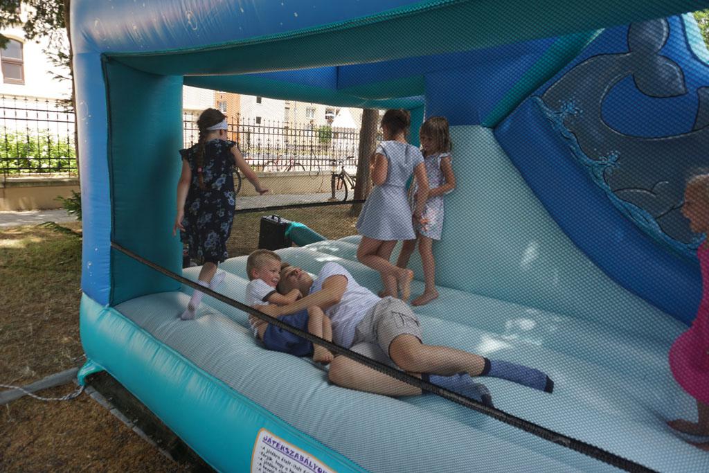Egy menetlevélen gyűjthettek matricákat az egyes állomásokon a gyerekek, melynek végén apró ajándékkal jutalmaztuk őket. A feladatok között volt igeverses színező, hibakereső, puzzle kirakó, amőba és dominó, célbadobás, valamint darts is. Készíthettek a gyerekek spatulából keresztet és egy totó is várta őket, mely az igehirdetés témájához kapcsolódott. A kicsik és nagyok kedvence lett a templomkertben felállított ugrálóvár.