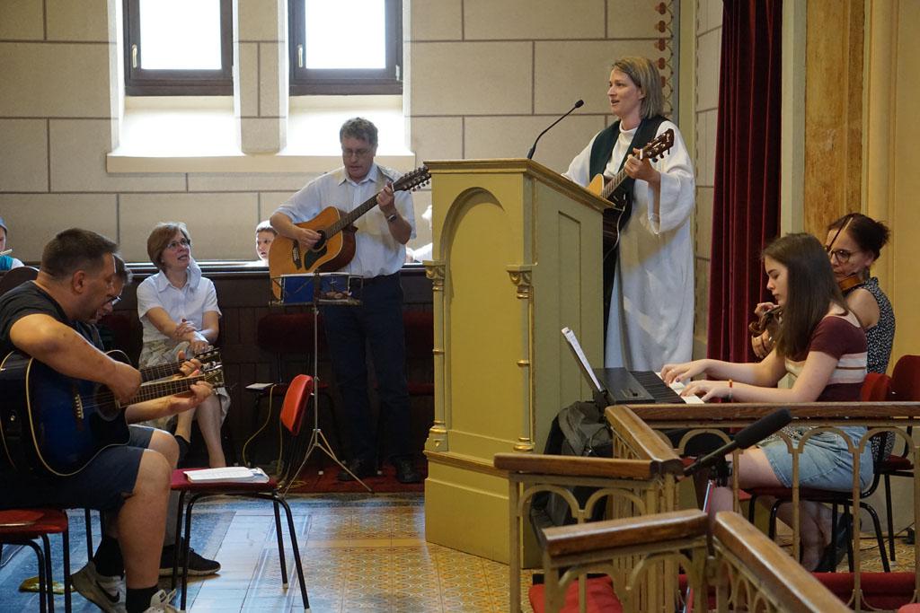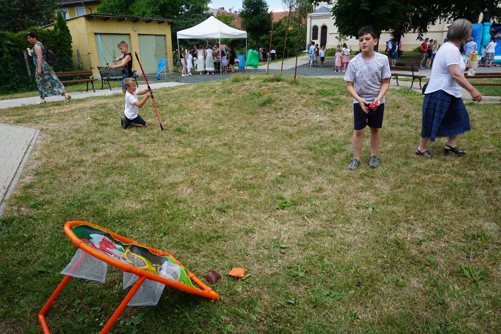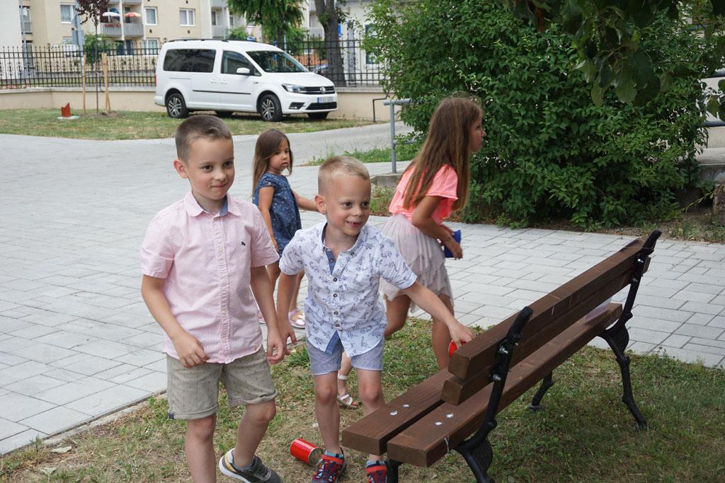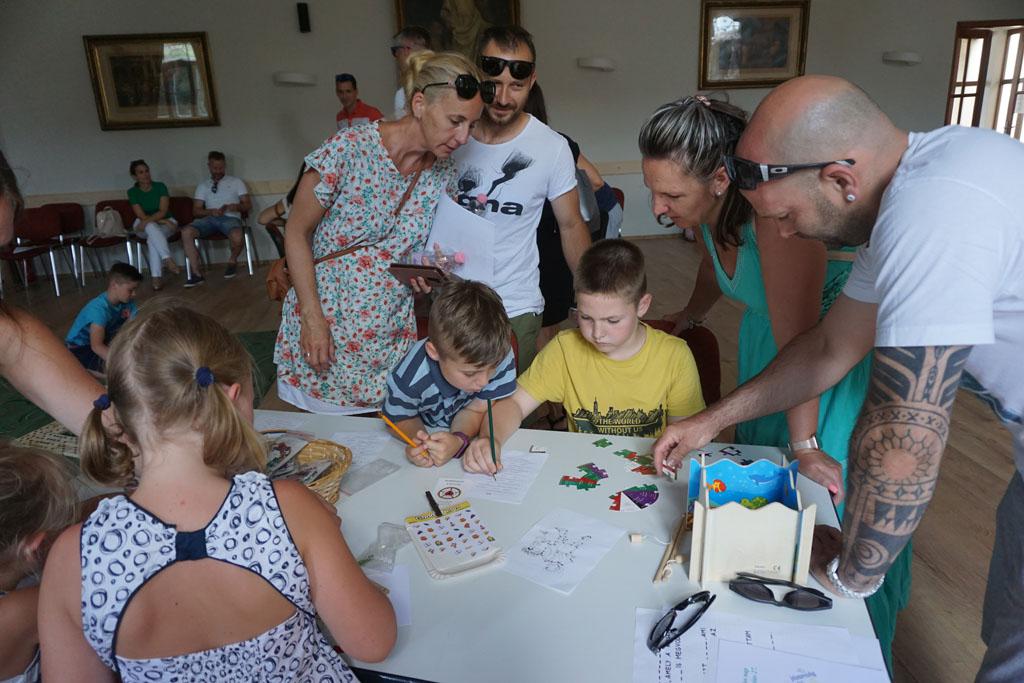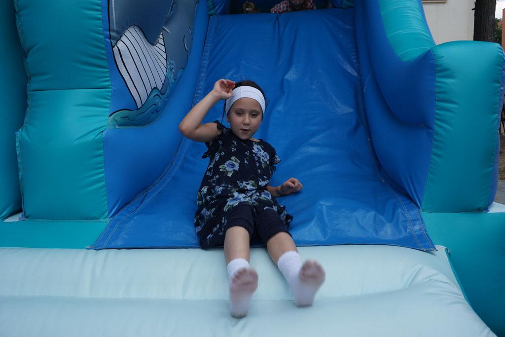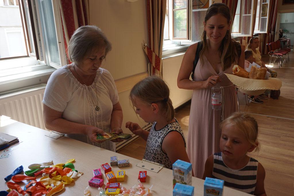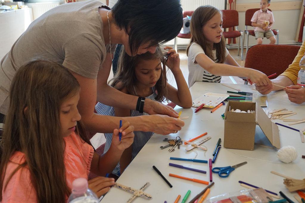 Egy menetlevélen gyűjthettek matricákat az egyes állomásokon a gyerekek, melynek végén apró ajándékkal jutalmaztuk őket. A feladatok között volt igeverses színező, hibakereső, puzzle kirakó, amőba és dominó, célbadobás, valamint darts is. Készíthettek a gyerekek spatulából keresztet és egy totó is várta őket, mely az igehirdetés témájához kapcsolódott. A kicsik és nagyok kedvence lett a templomkertben felállított ugrálóvár.