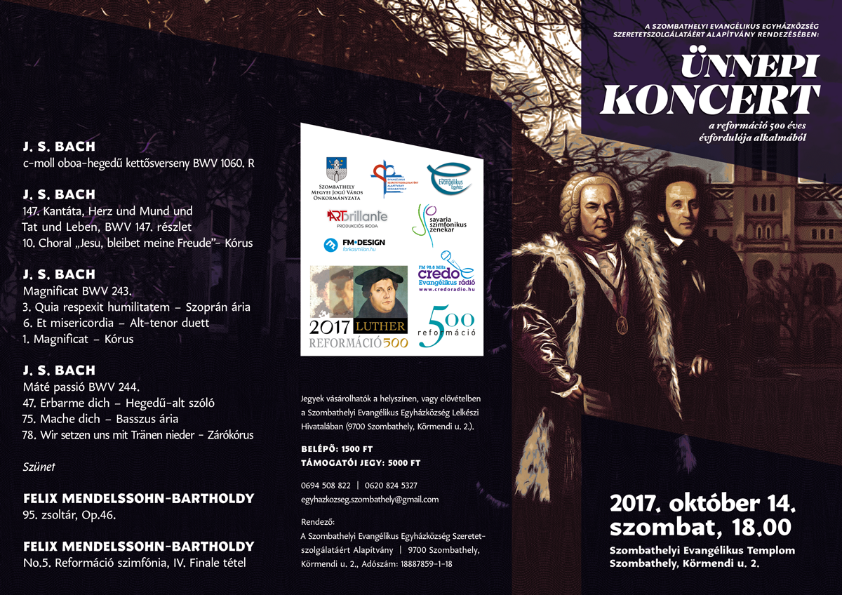 Október 14-én, szombaton 18 órától ünnepi koncert volt az evangélikus templomban a reformáció 500 éves évfordulója alkalmából.
