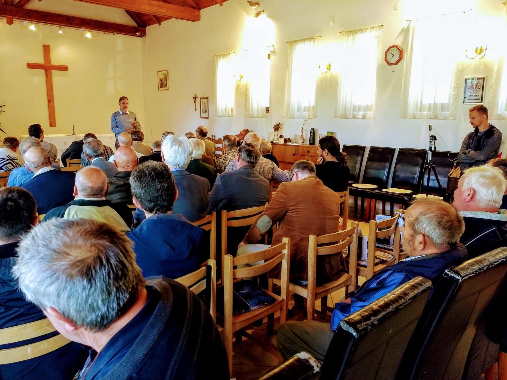 Szarka István esperes áhítata után Deák László kispesti lelkész tartott előadást A keresztény férfi a közéletben címmel. Ezután Baráth Tamás mérnök-informatikus, presbiter A keresztény férfi a munkahelyén és a családban címmel vallott személyes életéről.