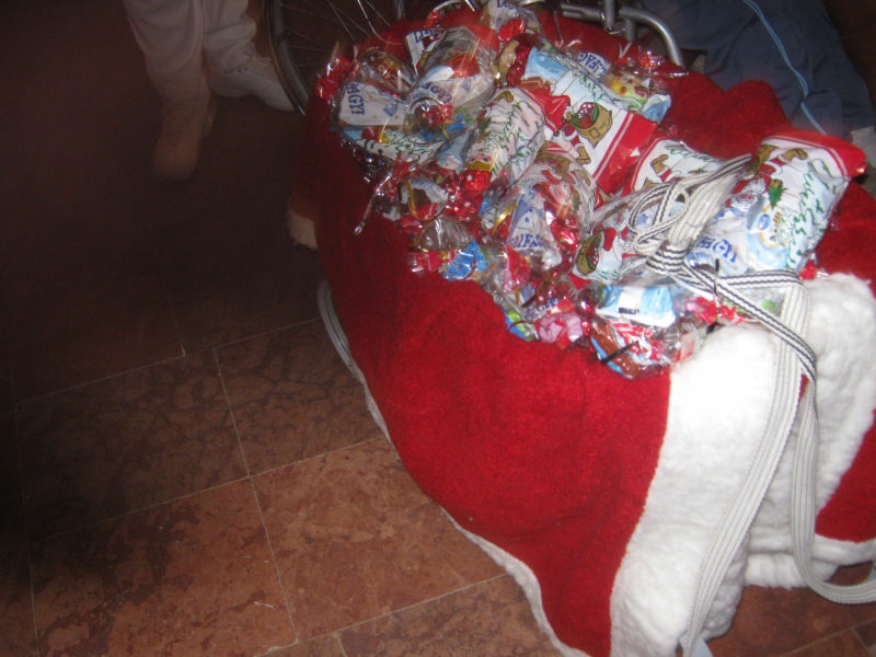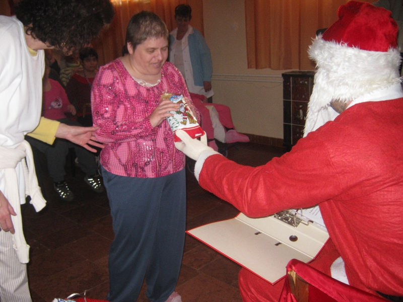 A Mikulás puttonyából édességekkel tömött csomagok kerültek elő, melyeket egy-egy dicsérő szó kíséretében kaphattak meg a felnőtt gyermekek. A lakók versekkel és énekekkel köszönték meg az ajándékot.