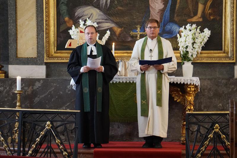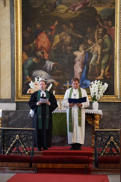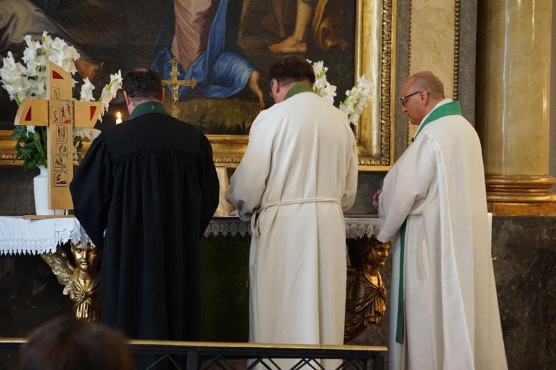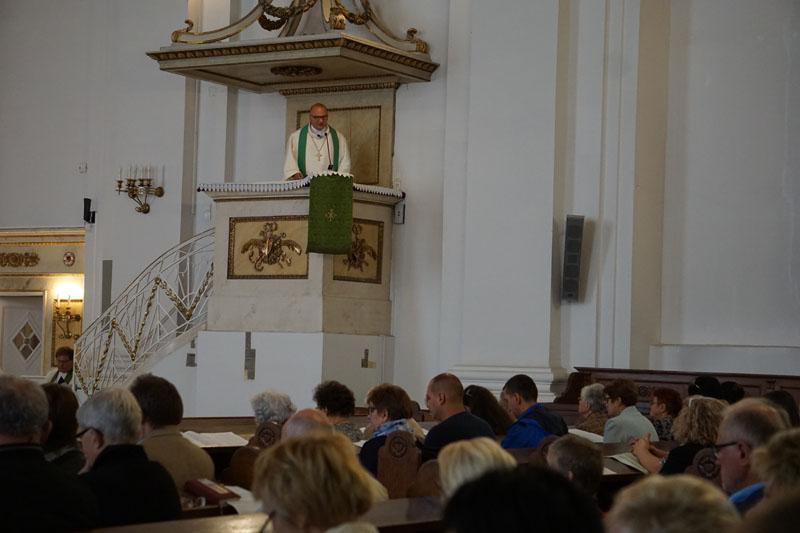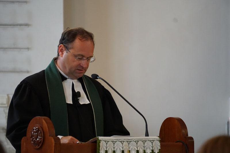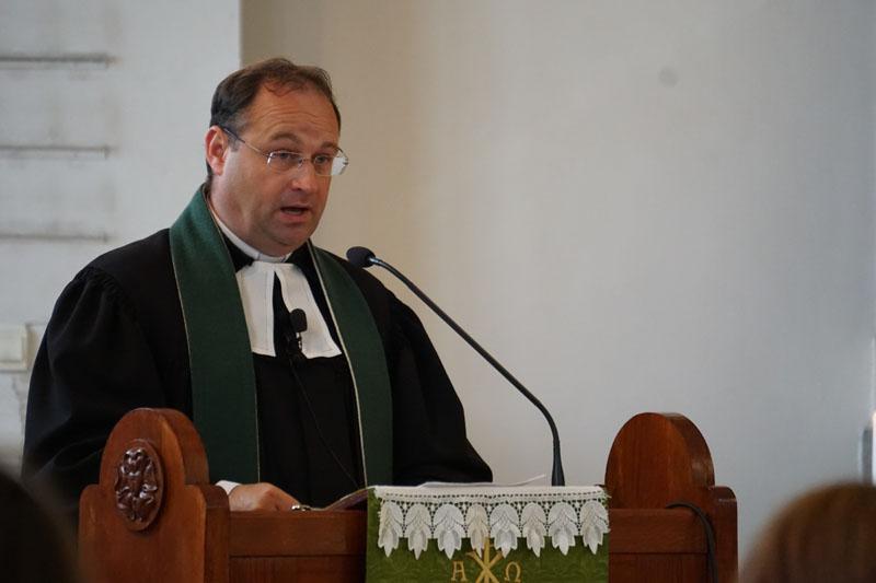 A Neuendettelsauból érkezett Mathias Hartmann prédikációjának alapigéje az Apostolok cselekedetei 6. fejezetének 1-7. versei voltak, amelyek az apostolok mellett szolgáló diakónusok szolgálatba állításáról szóltak.