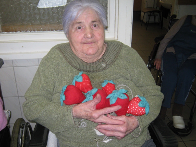 Zenehallgatás és beszélgetés közben epreket készítettünk. Ezt az "eperszüretet" mindannyian nagyon élveztük.