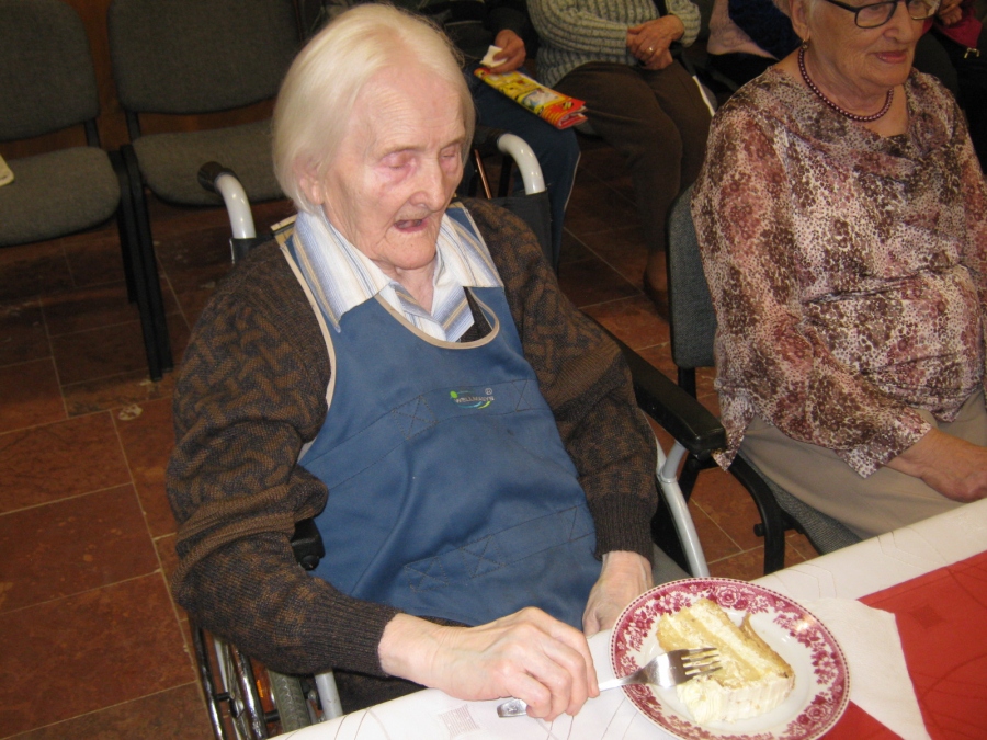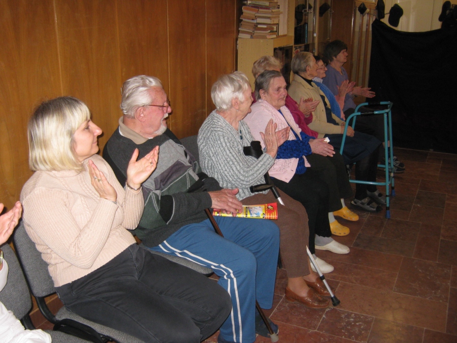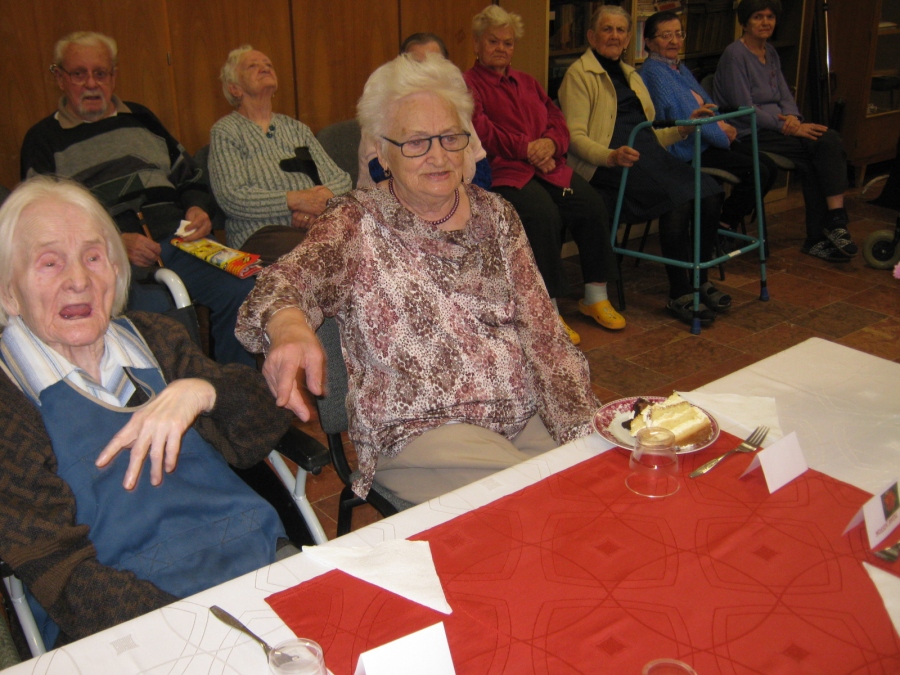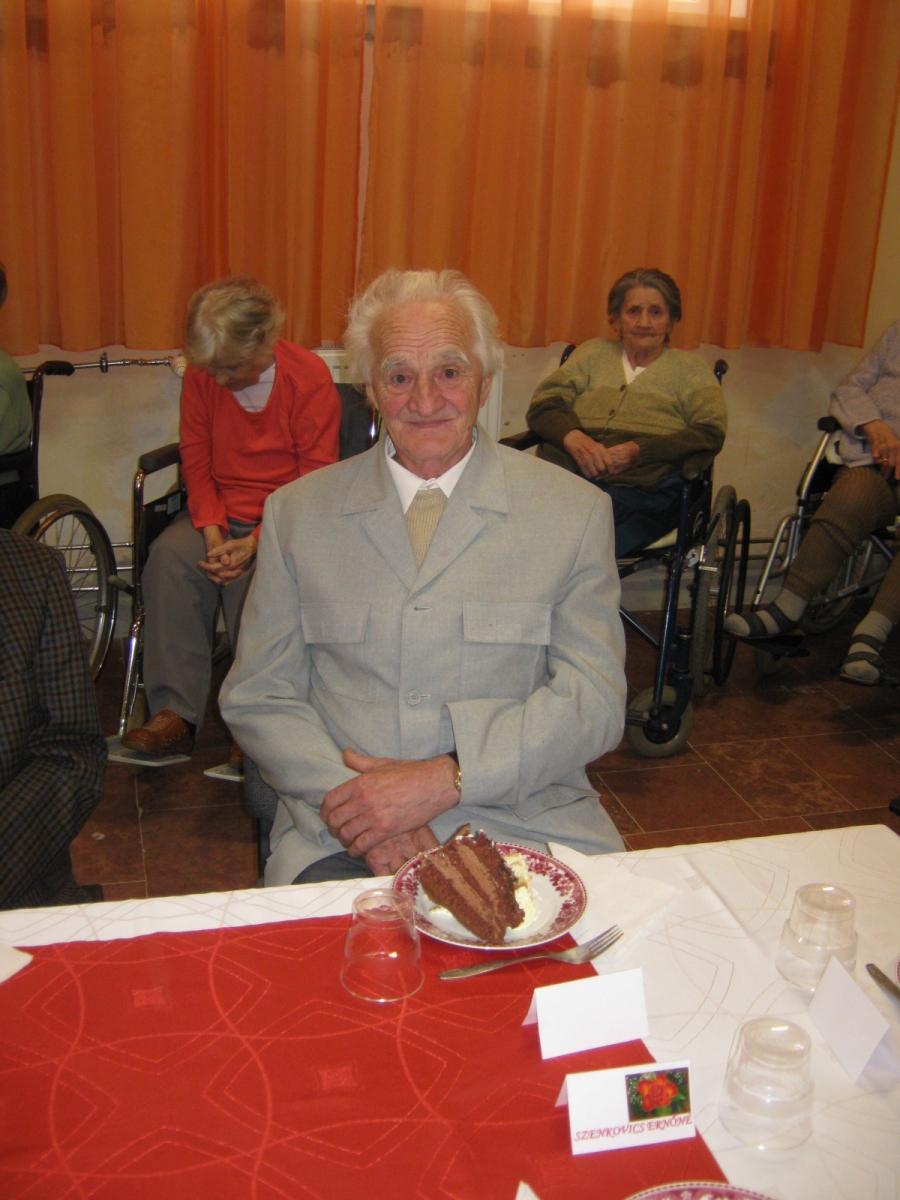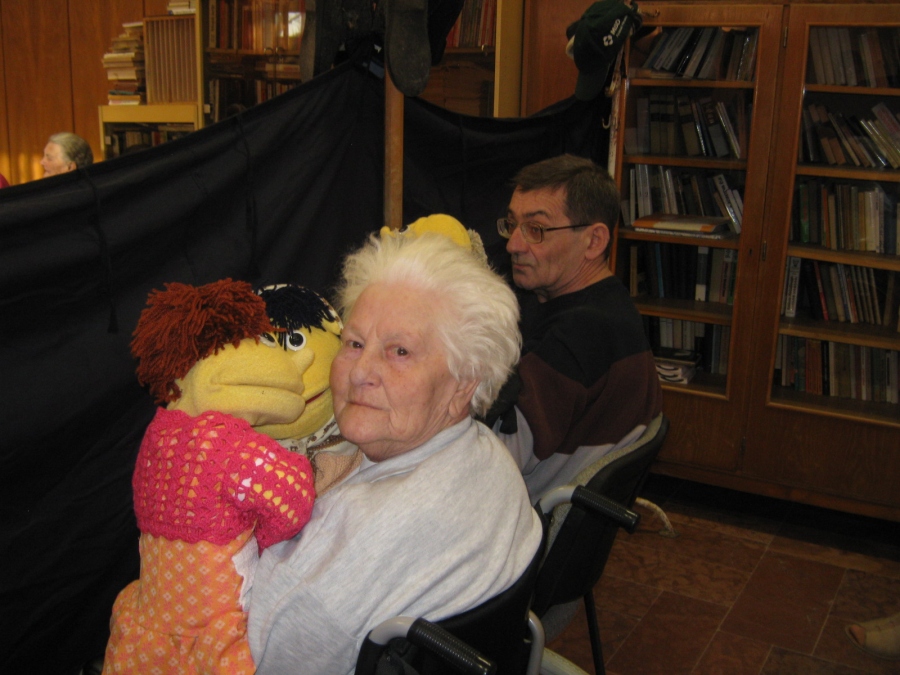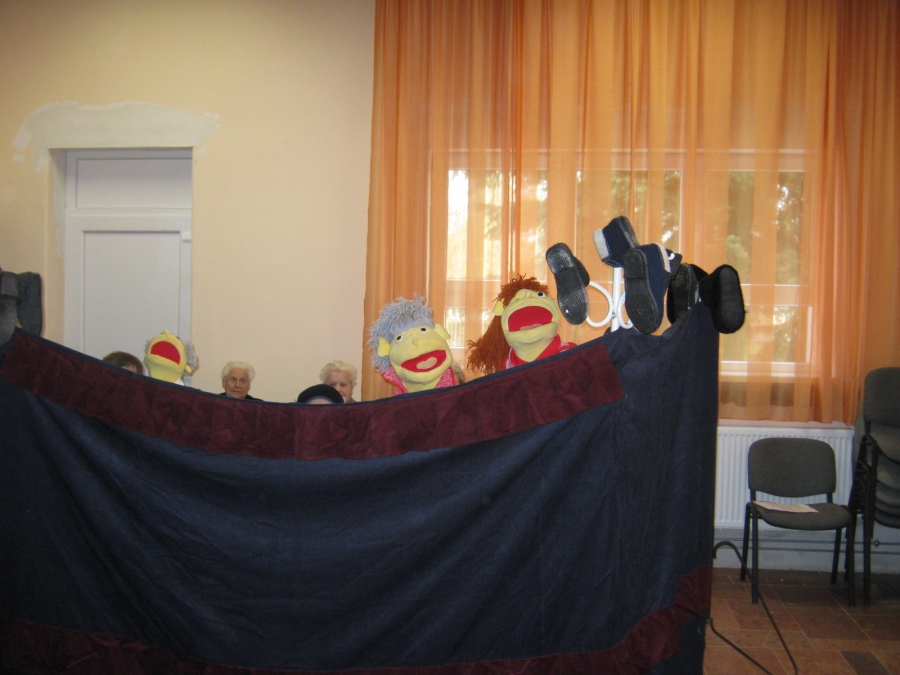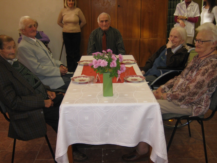 Ünnepi bábjátékkal és versekkel köszöntötték a lakók az ünnepelteket. Megható pillanatoknak lehettünk tanúi a csoportos és az egyéni köszöntésekkor. Az ünnepeltek részéről Gyopáros Nusi néni köszönte meg mindazt a szeretetet, amelyet közöttük átél.