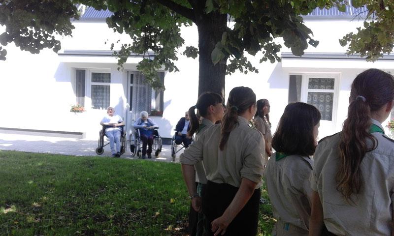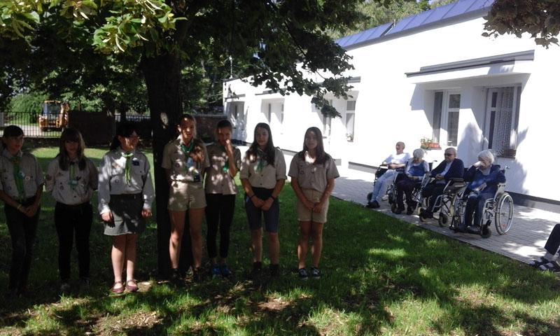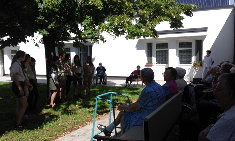 Ezen a héten minden nap vendégeink voltak a cserkész tábor kislakói,15 fős csoportban segítették munkánkat. Elkísértek minket fagyizni, kertészkedtek, beszélgettek idős lakóinkkal, pénteken pedig közös énekléssel zárták a heti önkéntes munkájukat.