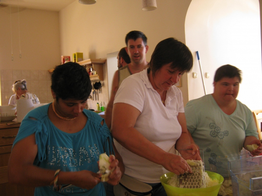 Serényen dolgoztak az apró ujjacskák és gondolatok a finomabbnál- finomabb ételek készítésekor (szendvicsek, gulyásleves, debreceni...).
