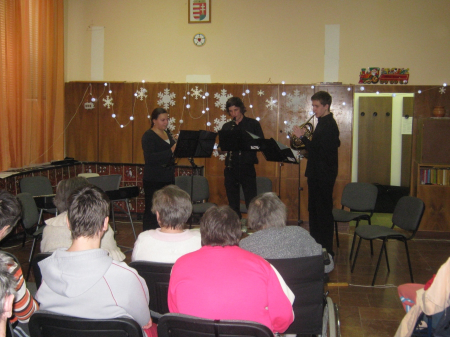 A Zeneiskola diákjai is meglepetés műsorral készültek a Johanneum lakói számára. Deák György, Deák Györgyné és Bognár Rita tanítványai örvendeztették meg lakóinkat.