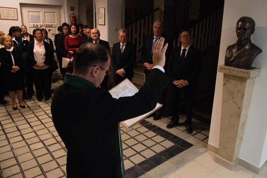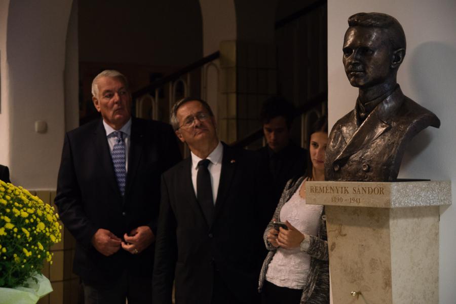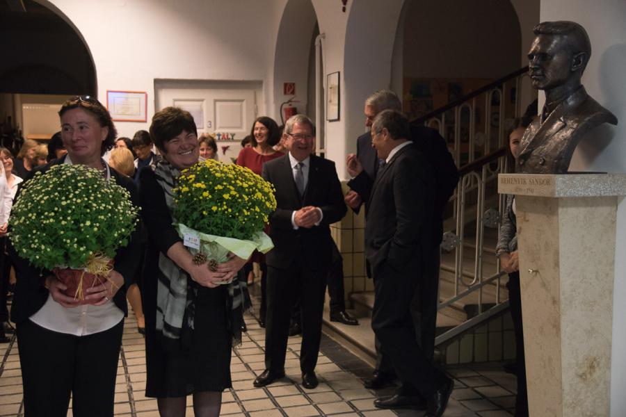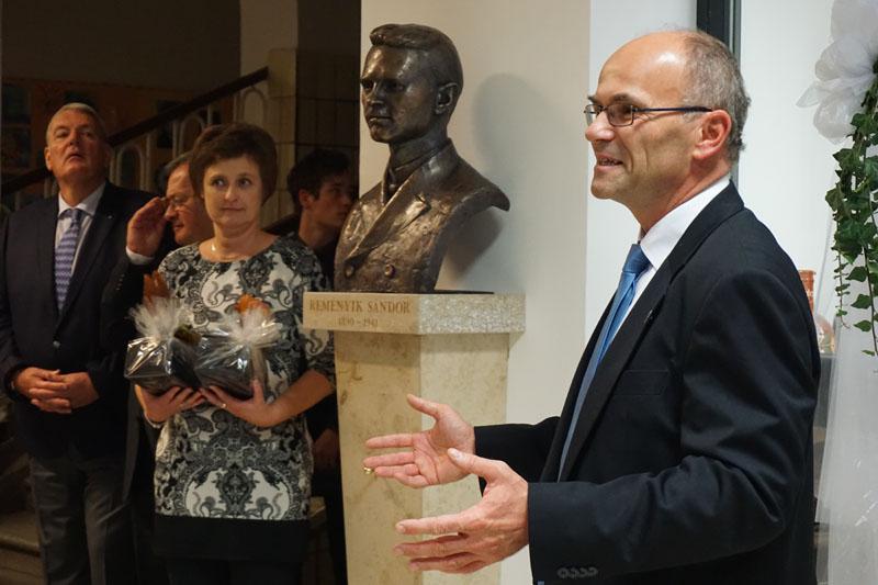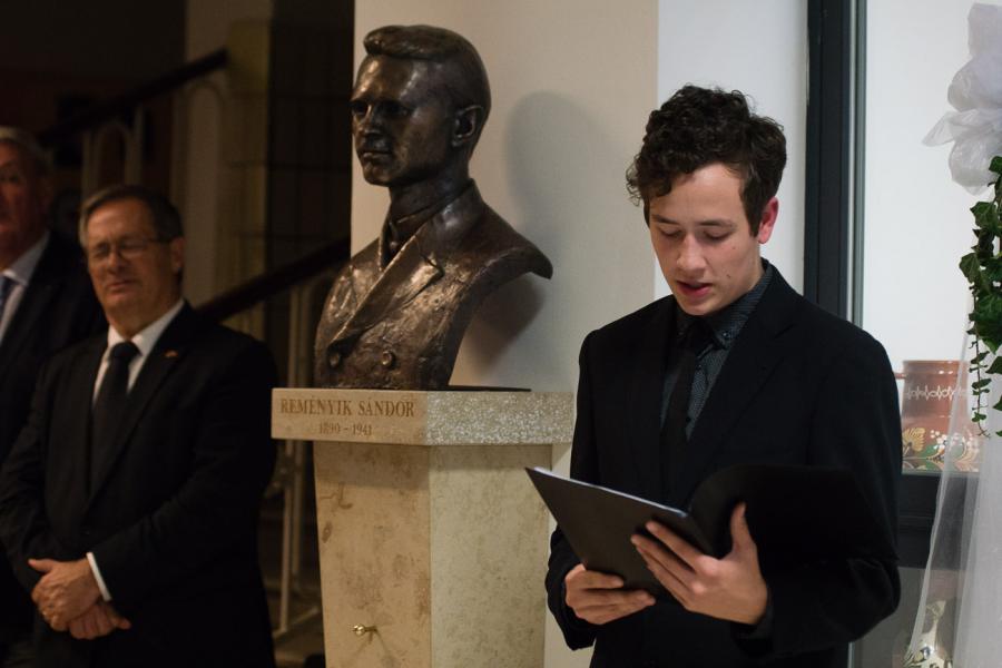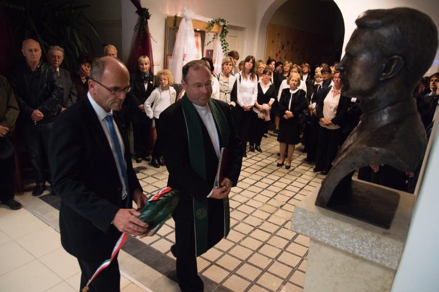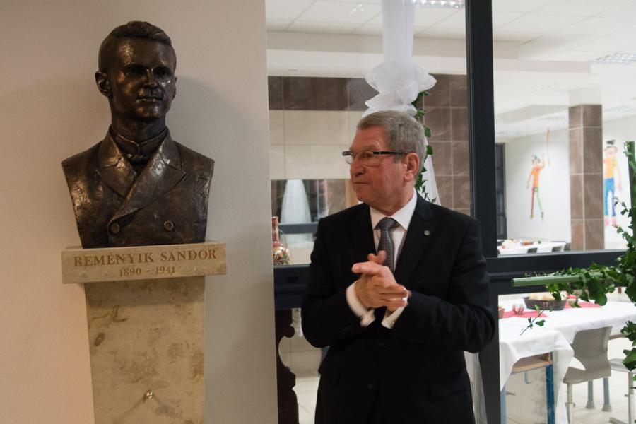 Az ünnepség az iskola aulájában Reményik Sándor szobrának leleplezésével folytatódott, ahol Puskás Tivadar polgármester is megköszönte az intézmény dolgozóinak eddigi munkáját, s egy emléklapot adott át a 10 éves évforduló alkalmából. A rendezvényen a bobai tagintézmény dolgozói is köszöntötték a 10 éves iskolát. Végül Gregresen-Labossa György lelkész megáldotta Reményik Sándor mellszobrát.