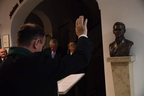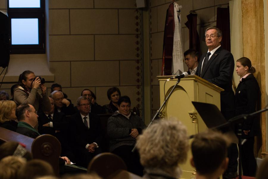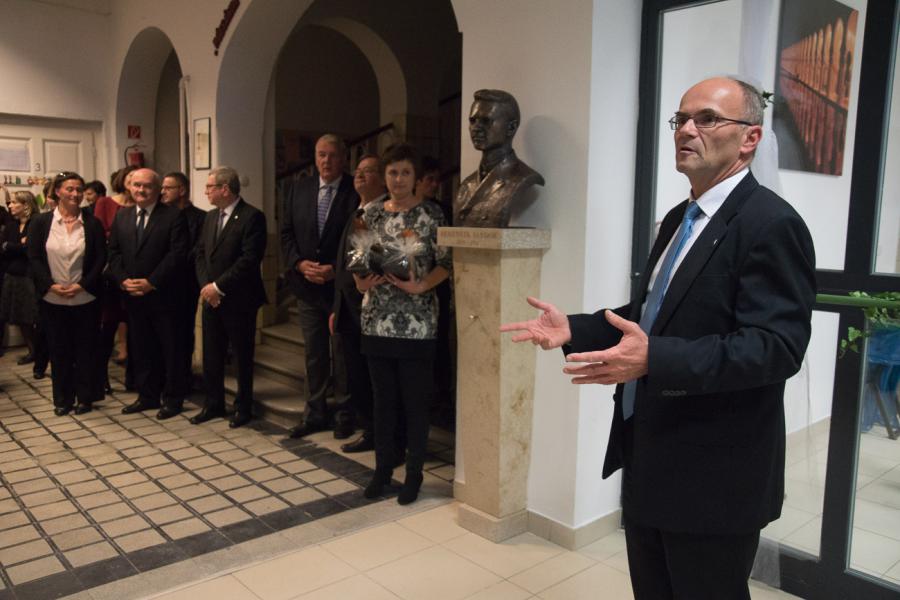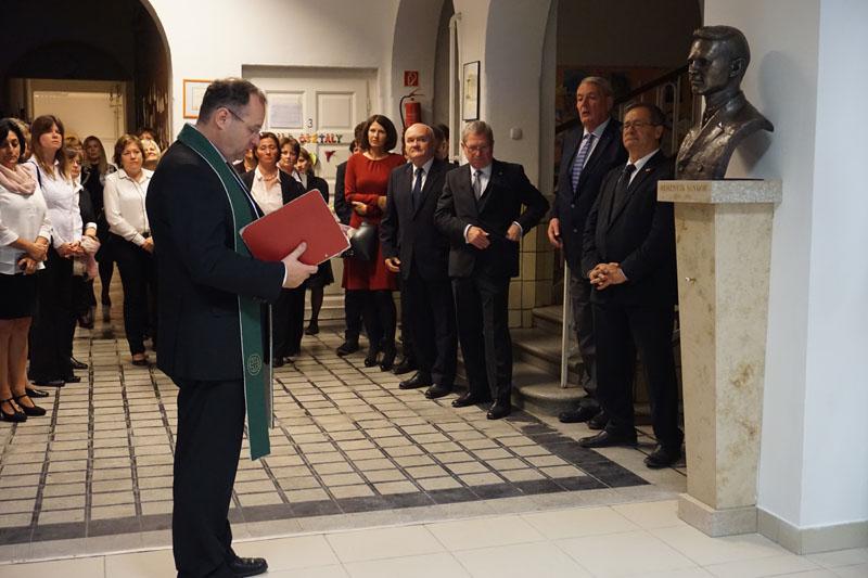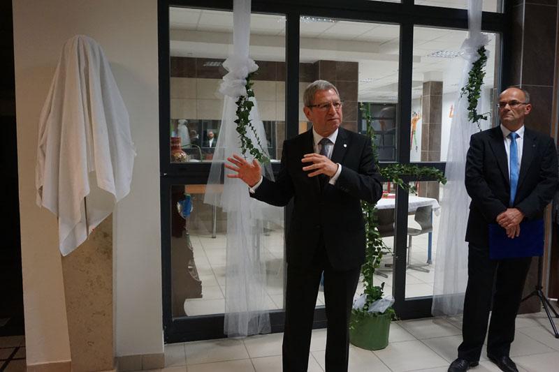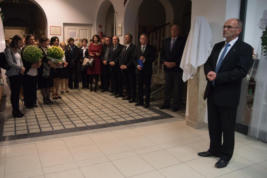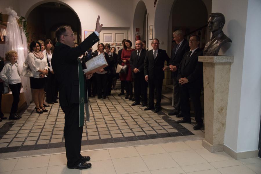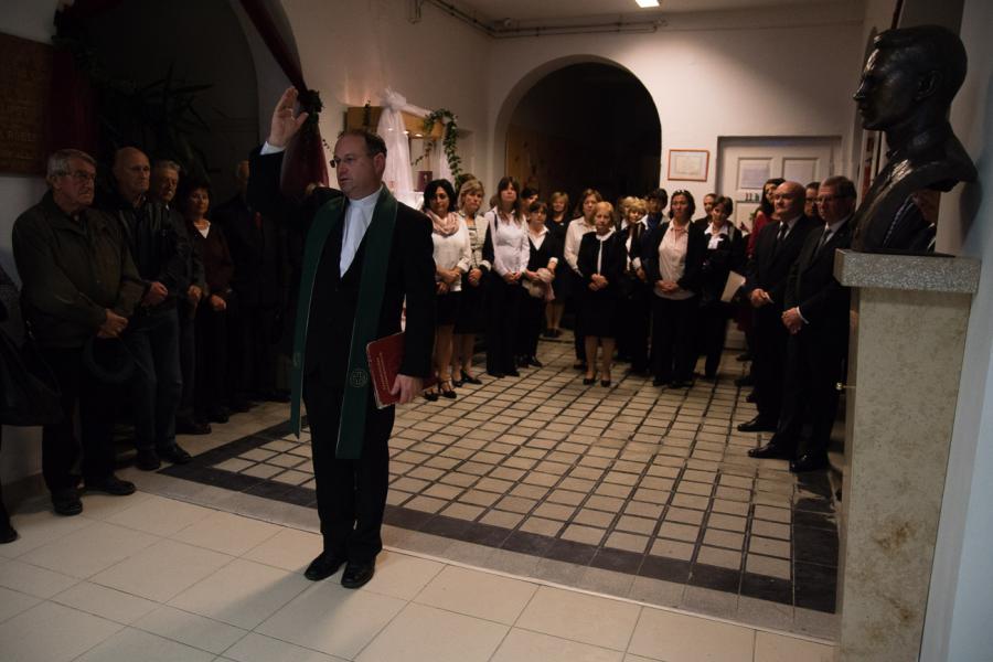 Az ünnepség az iskola aulájában Reményik Sándor szobrának leleplezésével folytatódott, ahol Puskás Tivadar polgármester is megköszönte az intézmény dolgozóinak eddigi munkáját, s egy emléklapot adott át a 10 éves évforduló alkalmából. A rendezvényen a bobai tagintézmény dolgozói is köszöntötték a 10 éves iskolát. Végül Gregresen-Labossa György lelkész megáldotta Reményik Sándor mellszobrát.