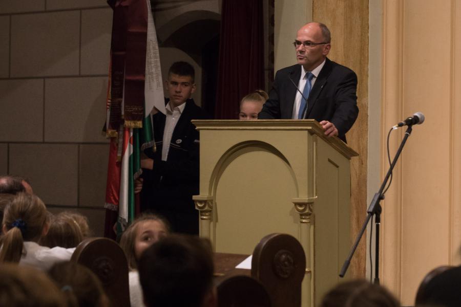 Az ünnepséget néptáncosaink nyitották meg a templom előtti téren, ahol a Boglya Együttes húzta a talpalávalót. Az alkalmon Hende Csaba országgyűlési képviselő köszöntötte a 10 éves iskolát, s egy örömhírt is elárult, miszerint hamarosan új tornacsarnokban sportolhatnak az intézmény tanulói. Az ünnepségen Ódor László nyelvész professzor méltatta az iskola névadóját, Reményik Sándort, majd Sátory Károly igazgató úr foglalta össze az elmúlt 10 év történéseit. A műsorban közreműködtek iskolánk és művészeti iskolánk tanulói, versekkel, zenével színestítették az alkalmat.