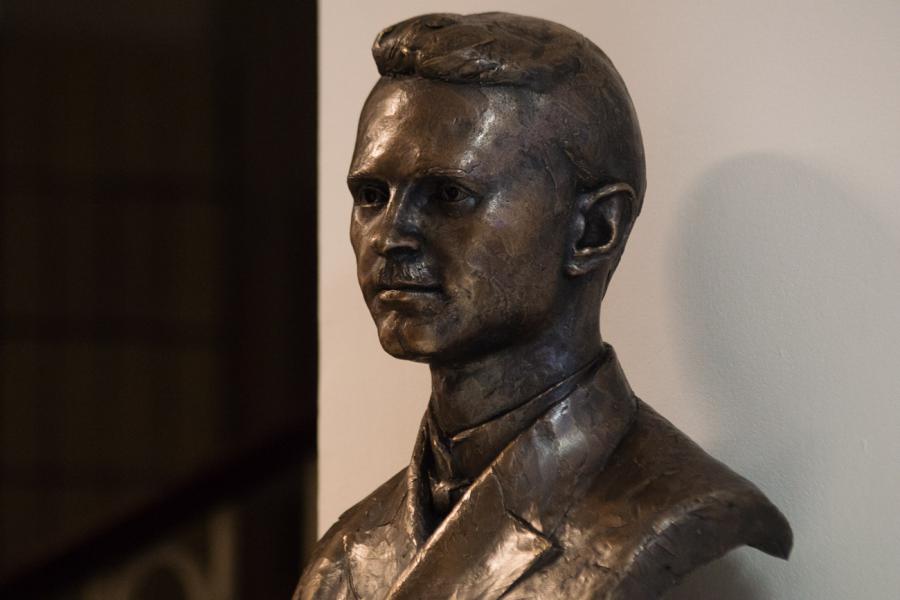 Reményik Sándor szobrát Veres Gábor szombathelyi szobrászművész készítette az évforduló alkalmából. Ezúton is köszönjük a szép alkotást!