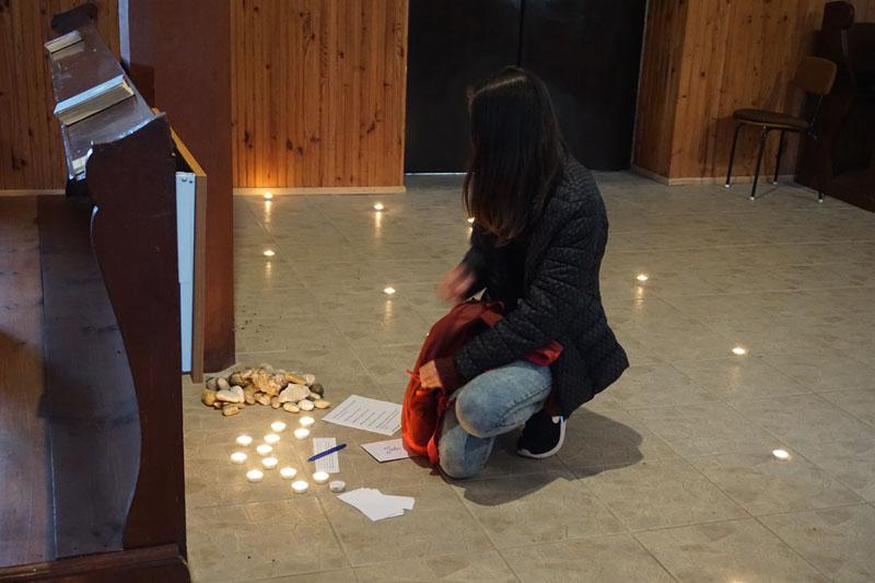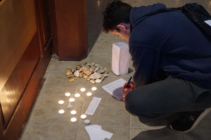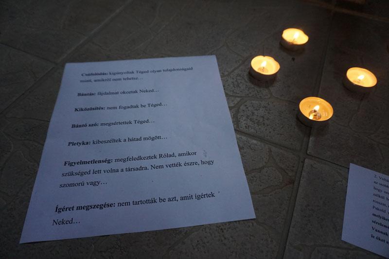 A lelkigyakorlat témája az Út volt. A fiatalok közösségi játékokon, személyes- és csoportbeszélgetéseken keresztül gondolták végig elmúlt éveik eseményeit, és gondolkodhattak az előttük lévő út terveiről. Földi utunk során elkerülhetetlen adódnak sérelmek és bántások „útitársainkkal” kapcsolatban. A hétvége lezárásaként egy imaösvényt járhattak végig a templomban, aminek segítségével Isten előtt is átgondolhatták és rendezhették ezeket.