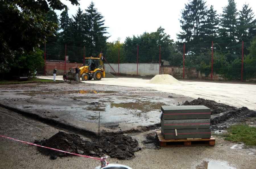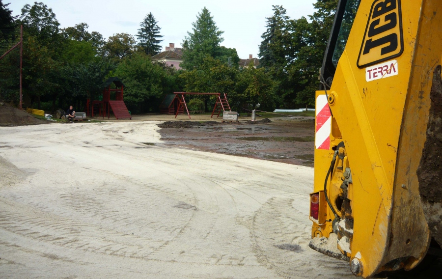 Megkezdődtek a talaj előkészítésének munkálatai a Reményik-iskolában. Ha az időjárás engedi, rövidesen műfüves pályán rúghatják a bőrt a diákok.